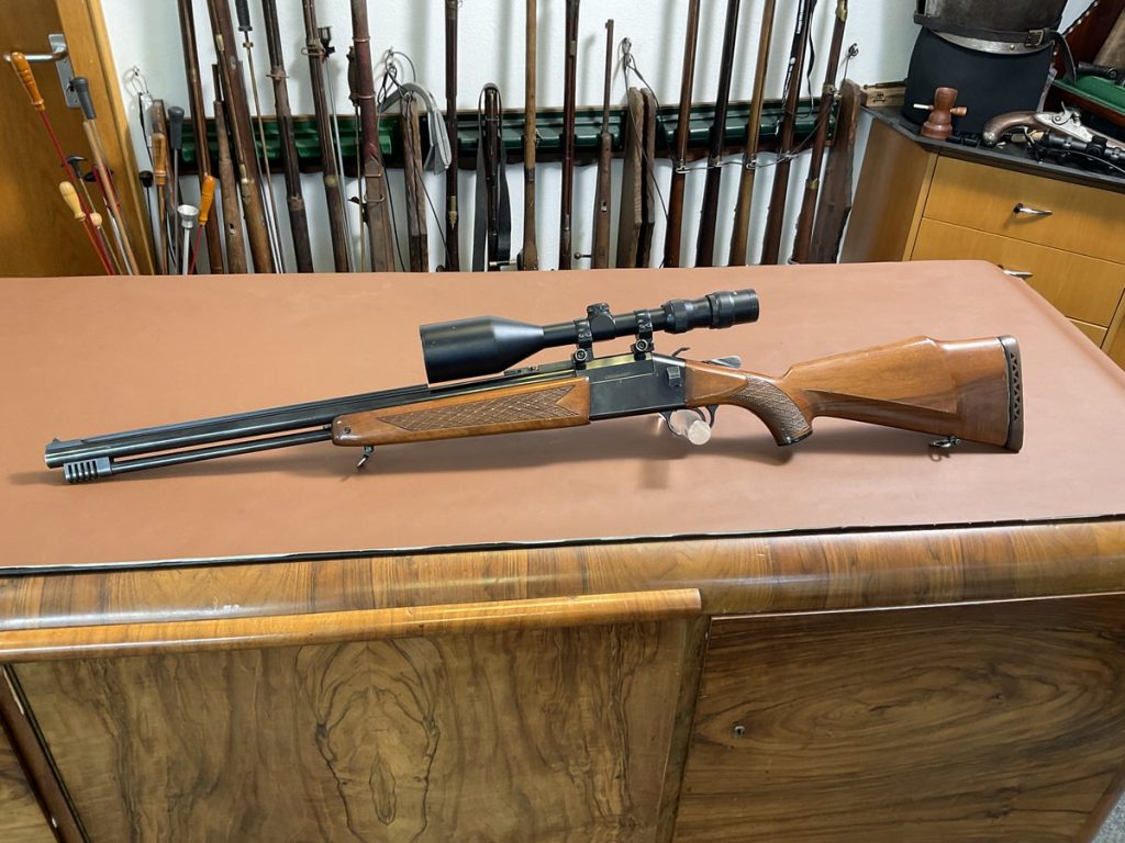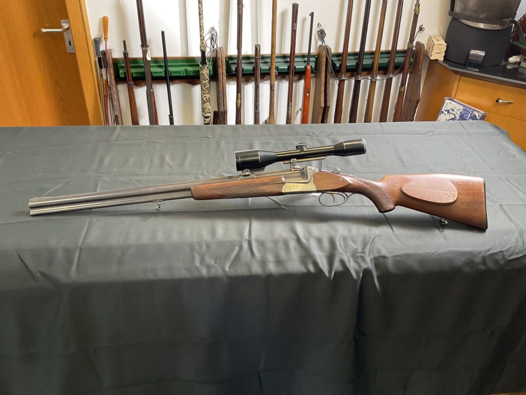 zum Verkauf steht eine gebrauchte Bockbüchsflinte mit verstärkten Schrotbeschuß.