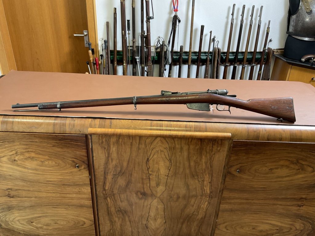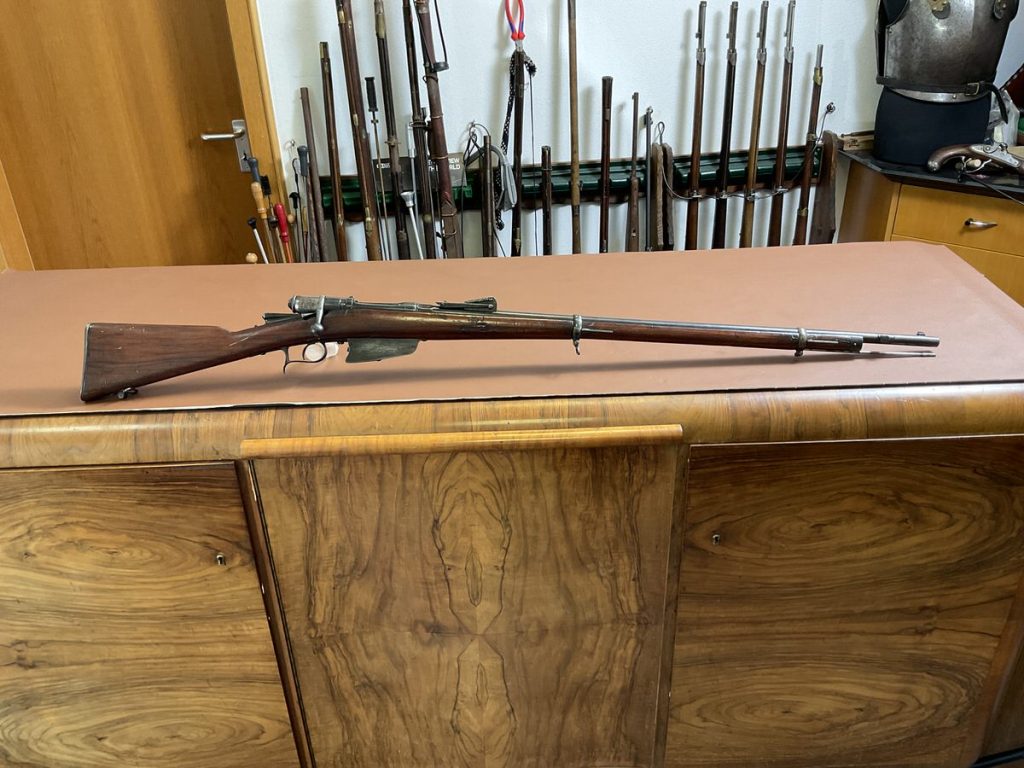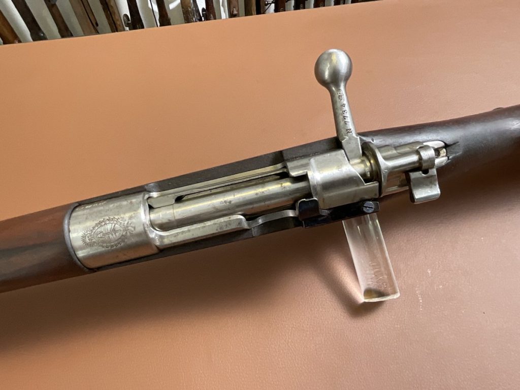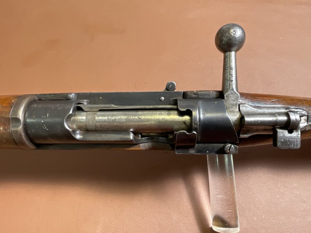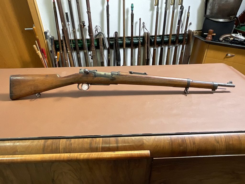 zum Verkauf steht eine technisch sehr gut erhaltene Repetierbüchse aus dem Entwicklungsjahre 1909 im Kaliber 7,65x53Arg.
