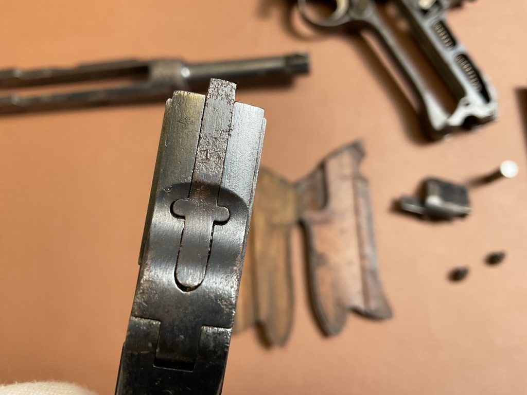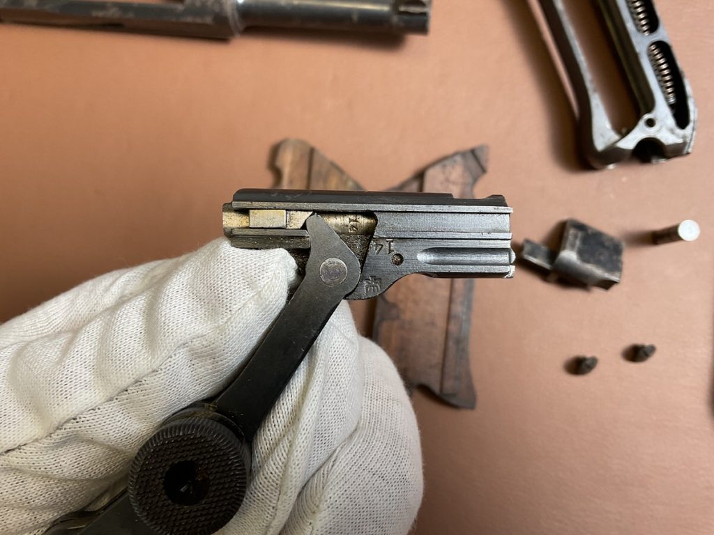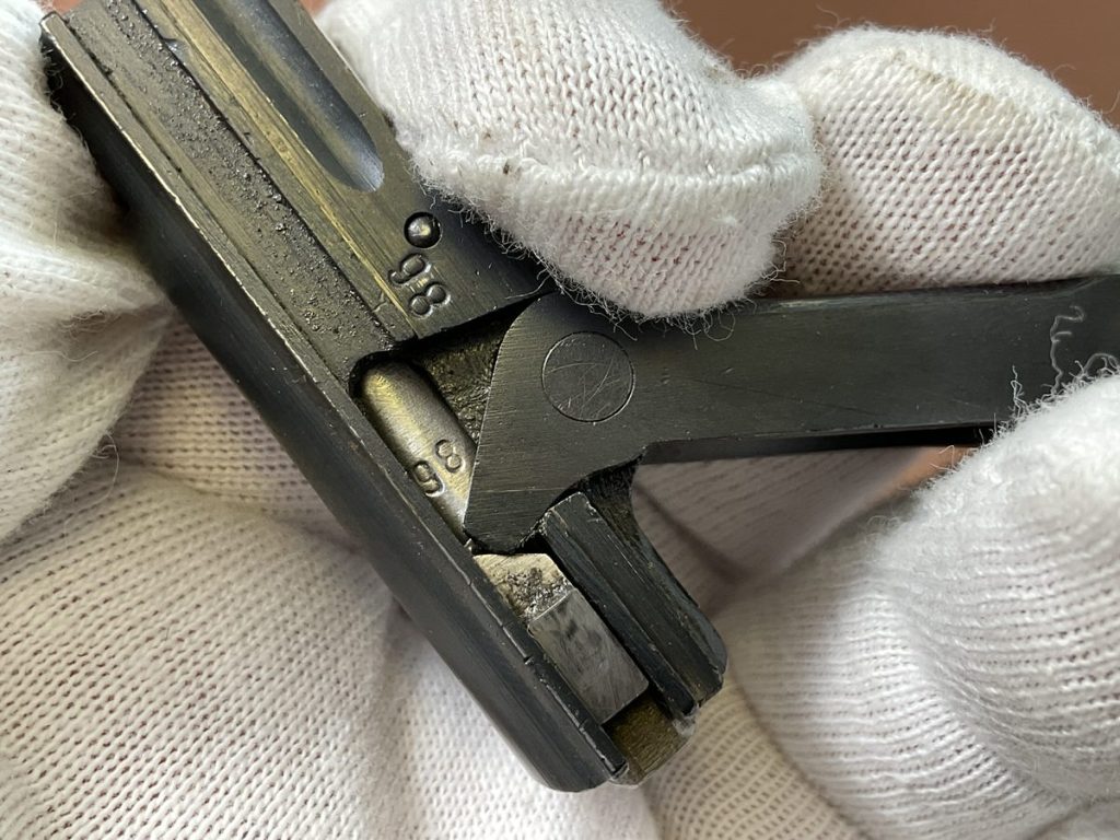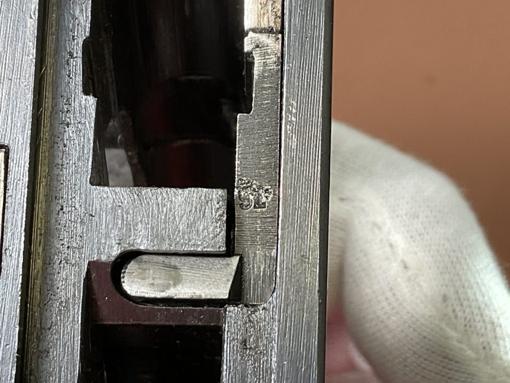 – Verschlussfanghebel mit der Nummer 36 gestempelt, die Magazinnummer wurde der Waffe angepasst (s. Magazinboden Zufix I)