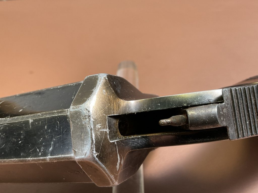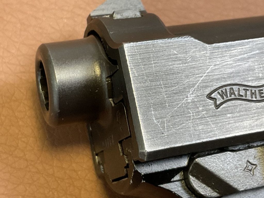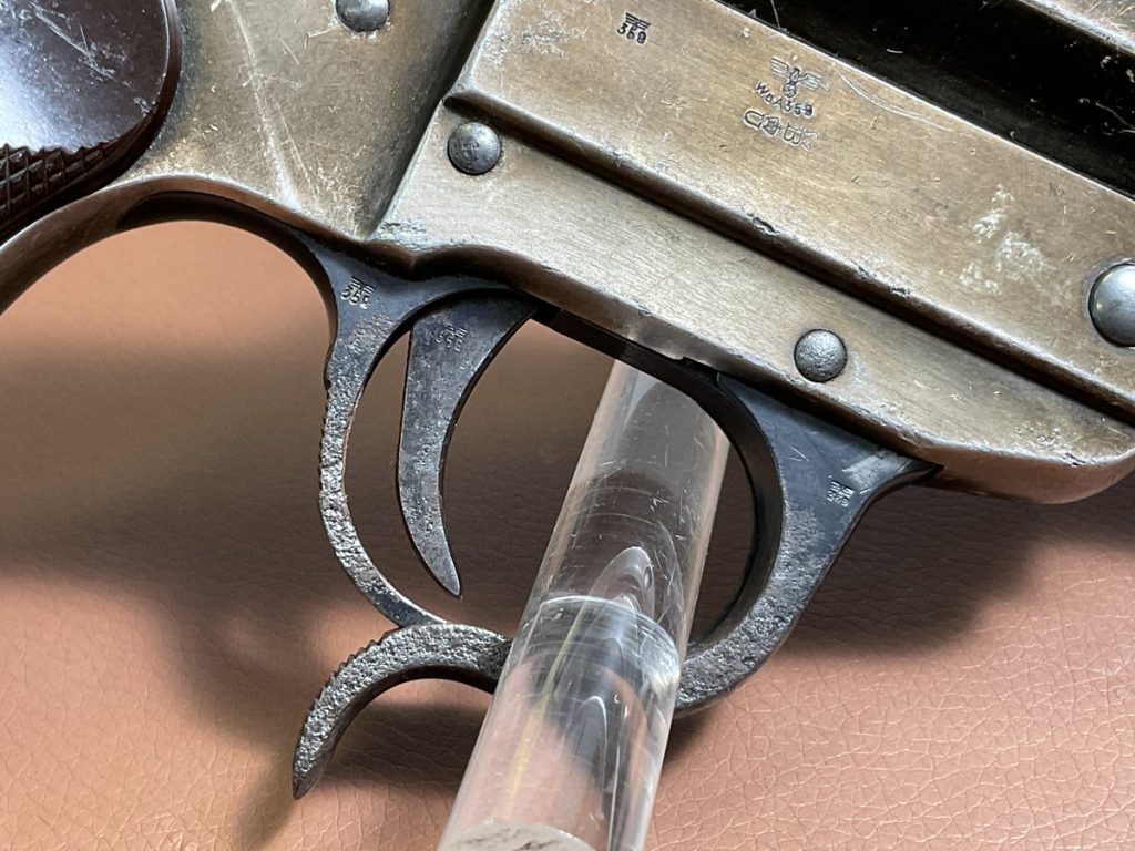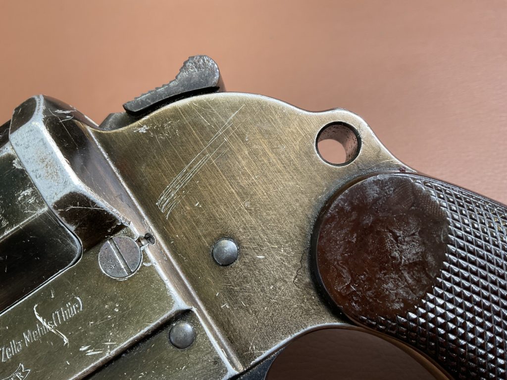 -an der Pistole ebenfalls leichte Gebrauchsspuren vorhanden (z. B. kleine Delle vorne am Lauf, s. Bilder)