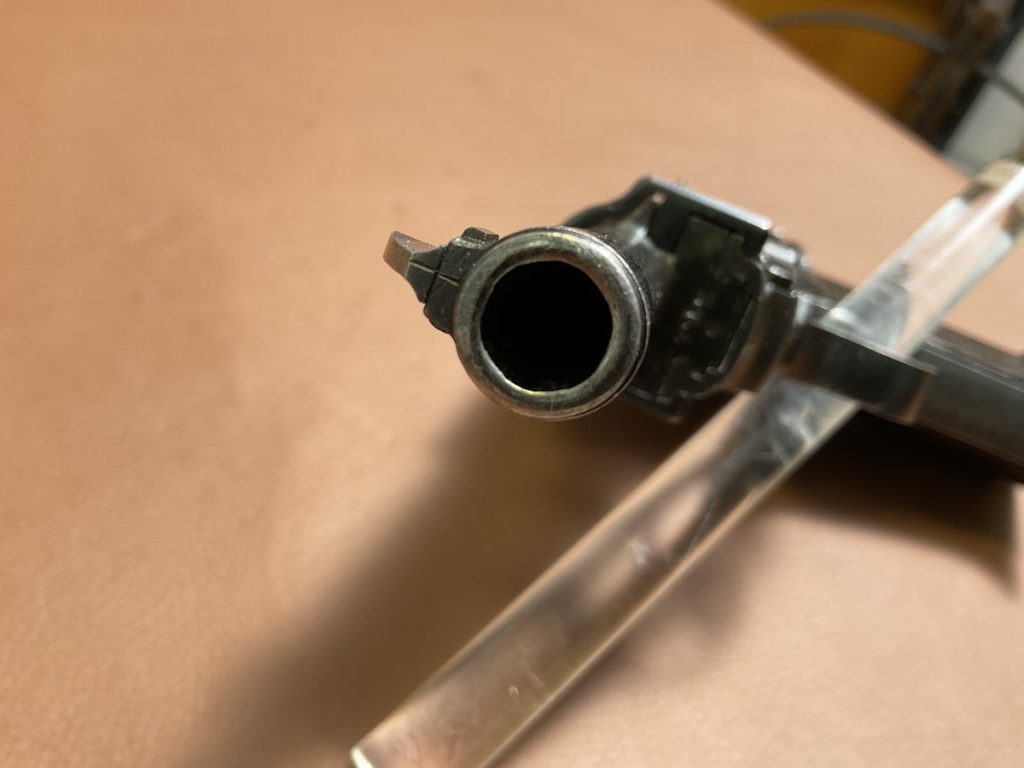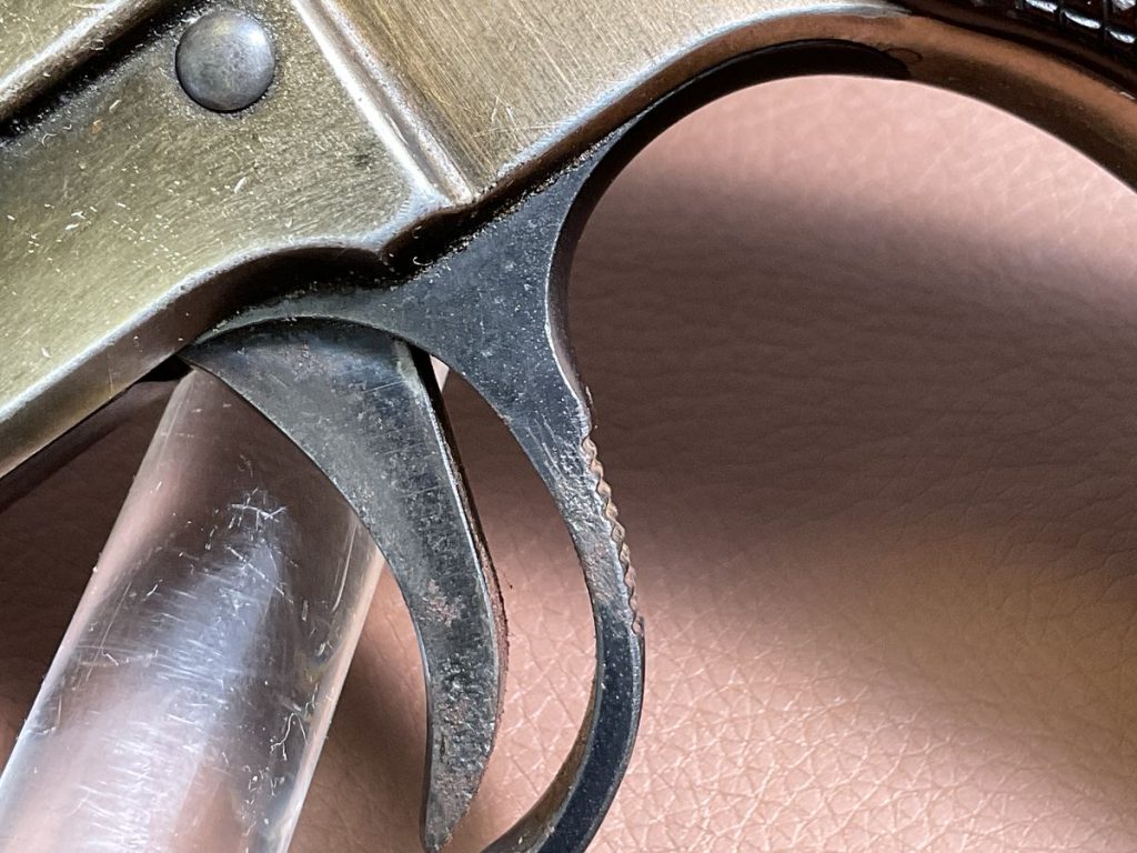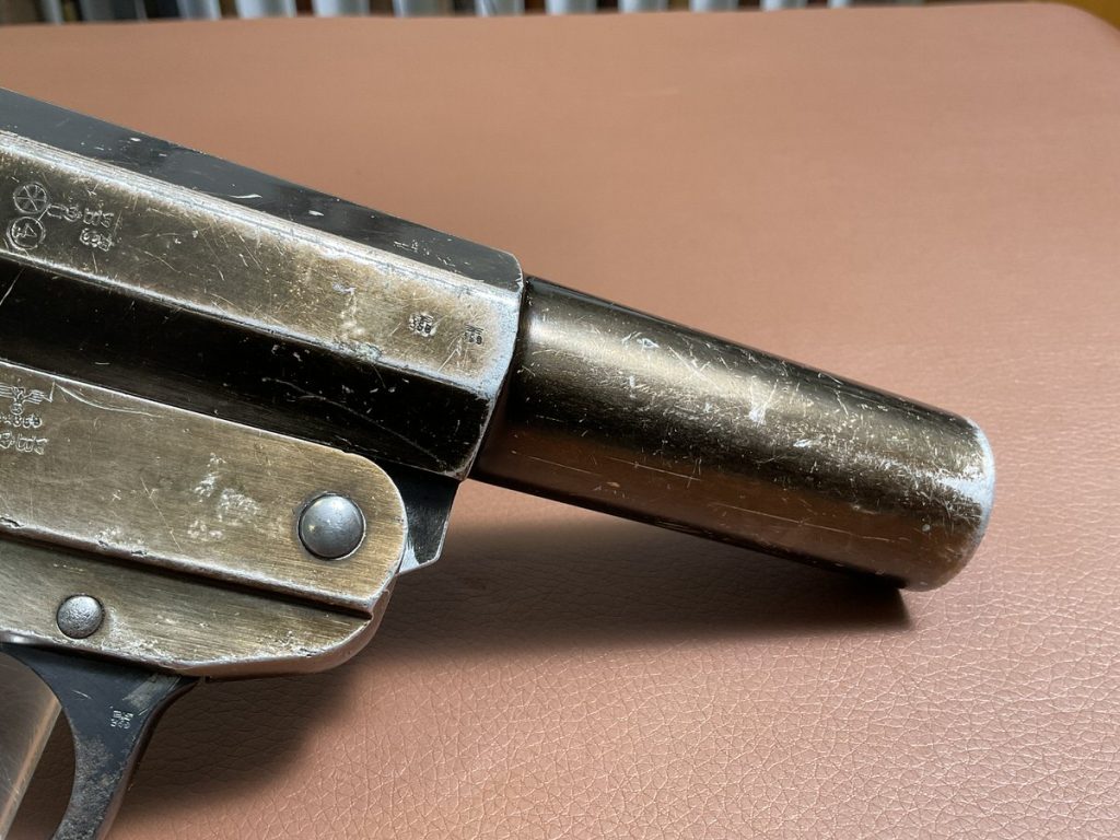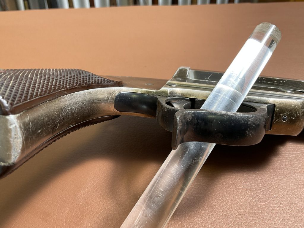 -an der Pistole ebenfalls leichte Gebrauchsspuren vorhanden (z. B. kleine Delle vorne am Lauf, s. Bilder)