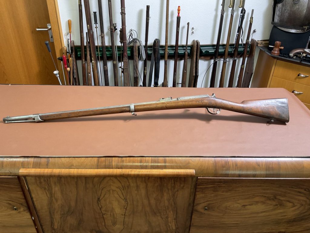 zum Verkauf steht ein gut erhaltenes Zündnadelgewehr Chassepot Mle 1866 gefertigt in MANUFACTURE IMPERIALE Chatellerault im Jahre 1868.