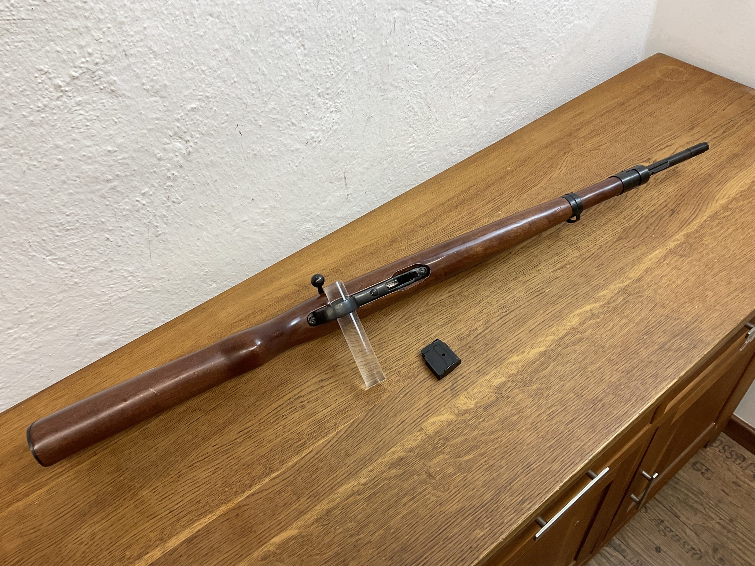 zum Verkauf steht eine technisch sehr gut erhaltene Repetierbüchse die auf Einzelladerbüchse umgerüstet wurde.