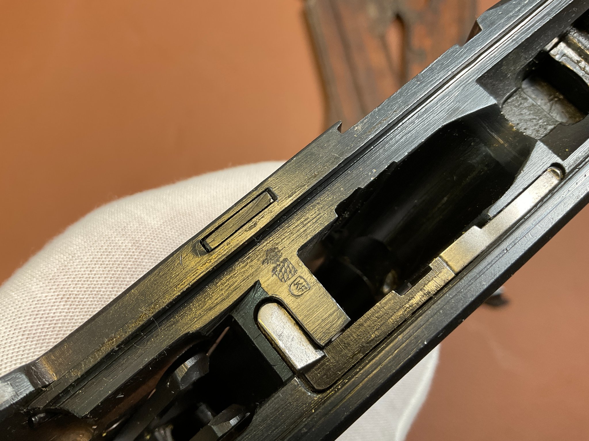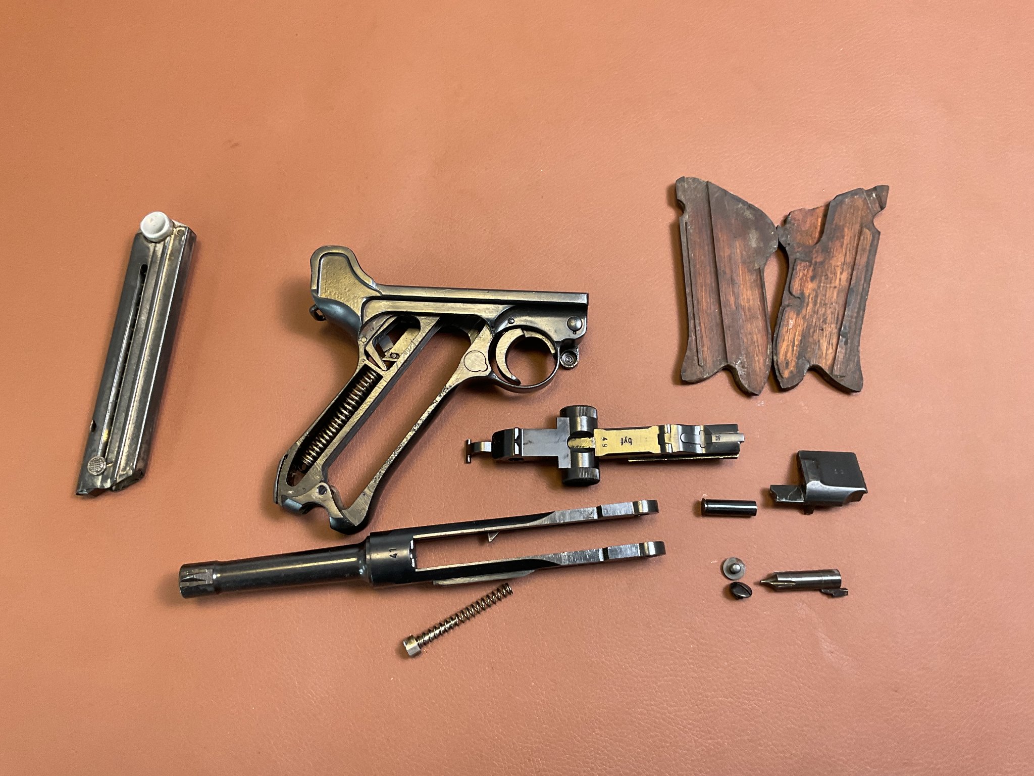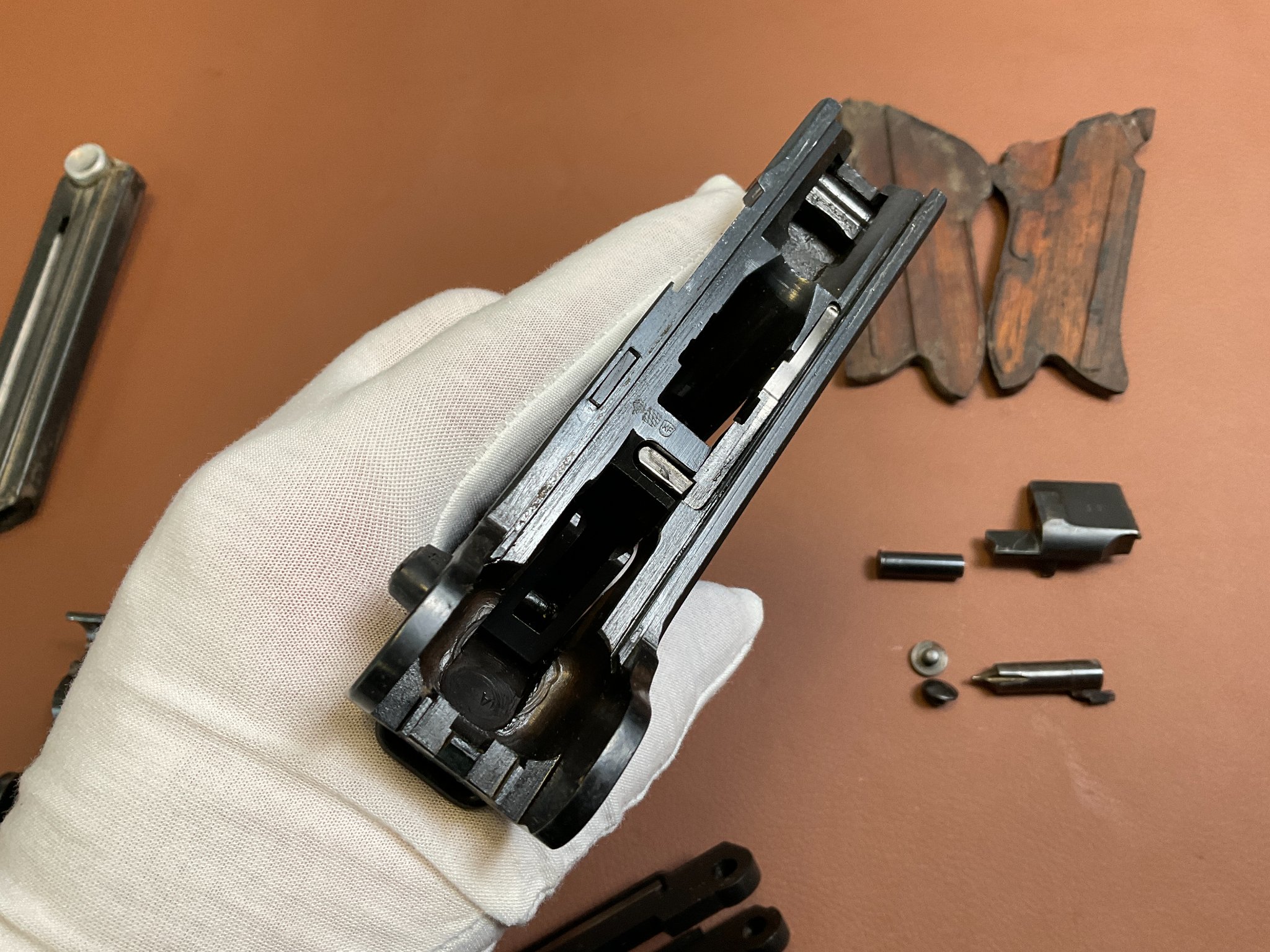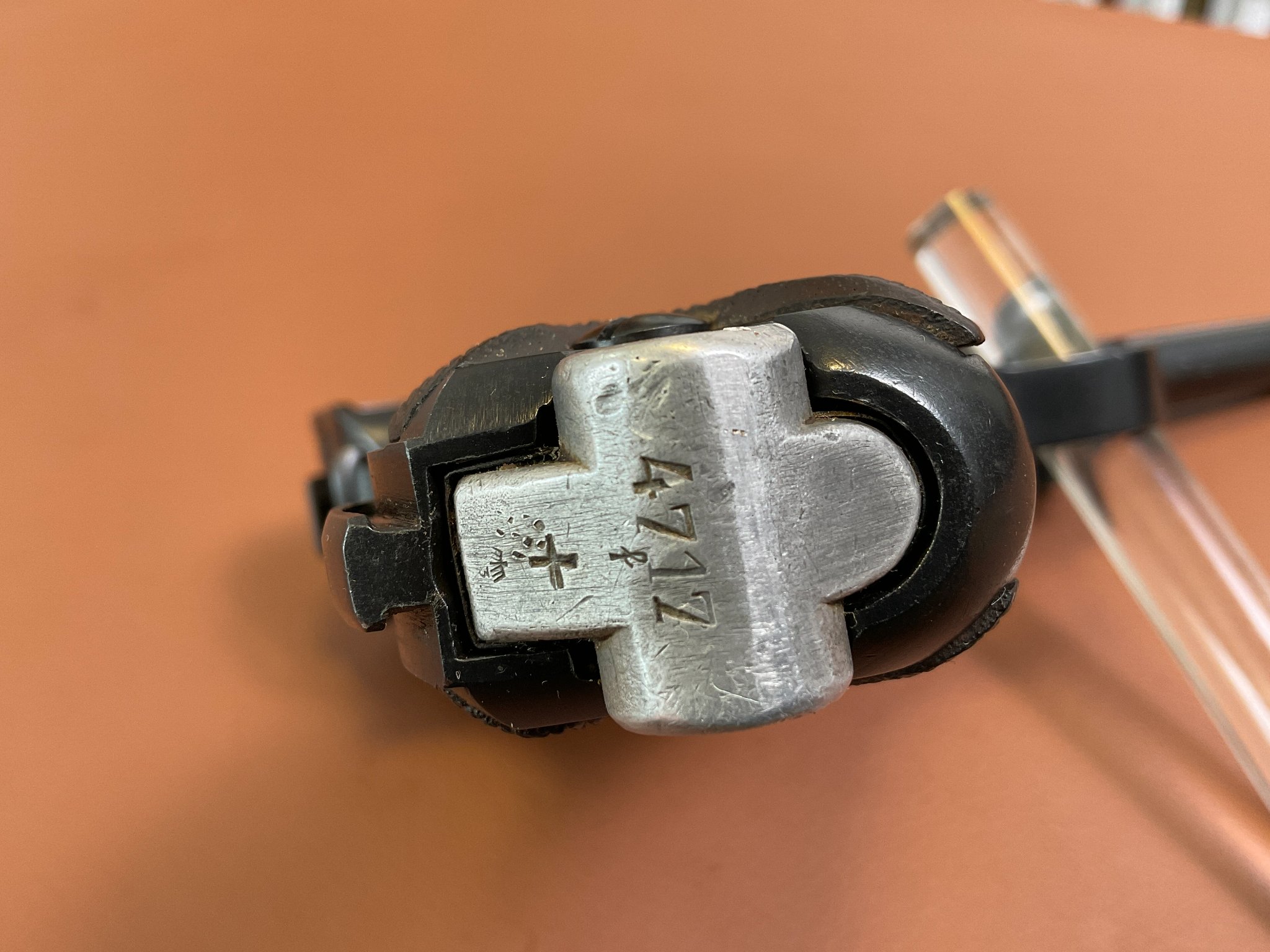 Griffschalen und Magazin sind nicht nummerngleich, ebenso der Auszieher.