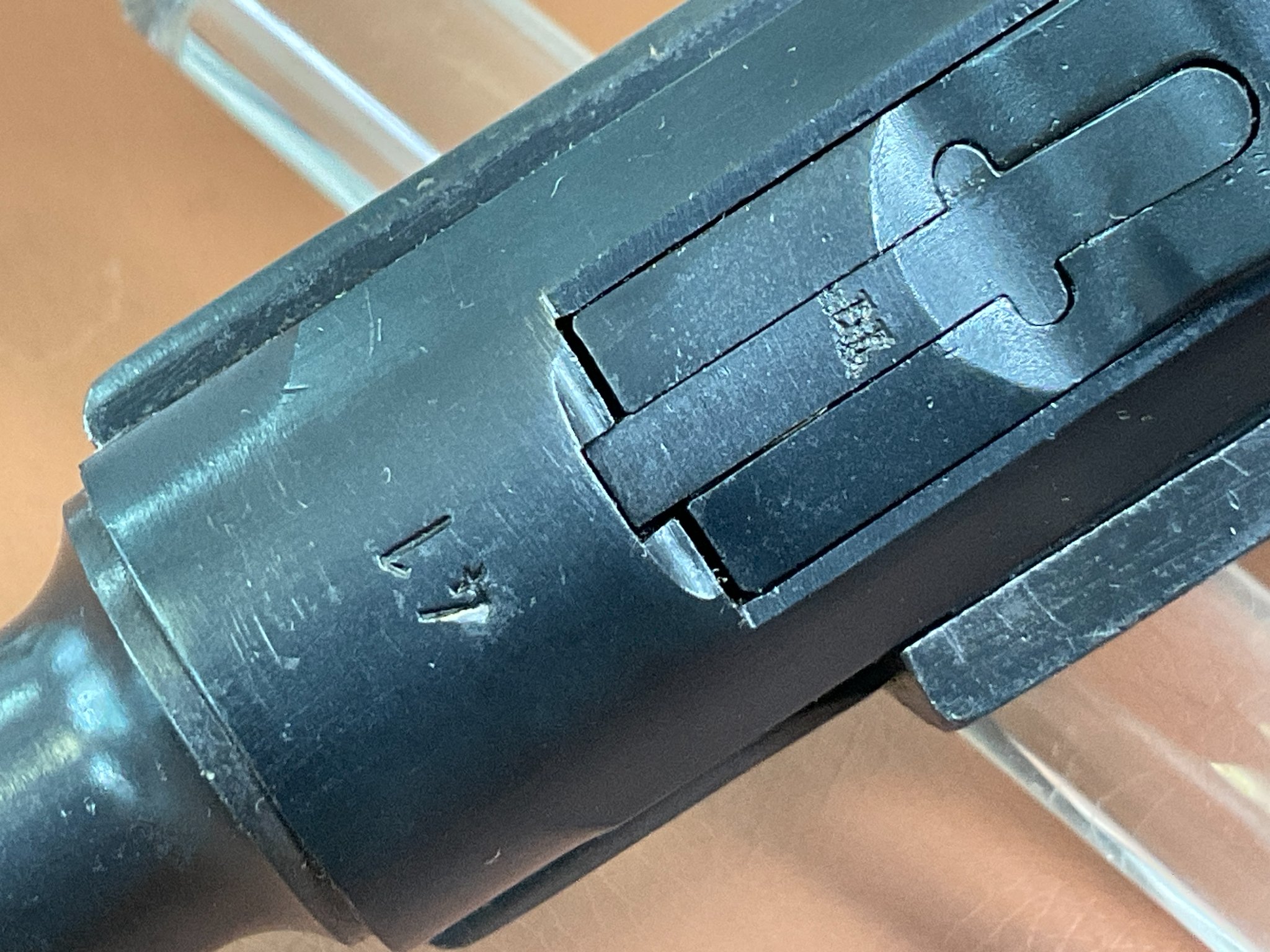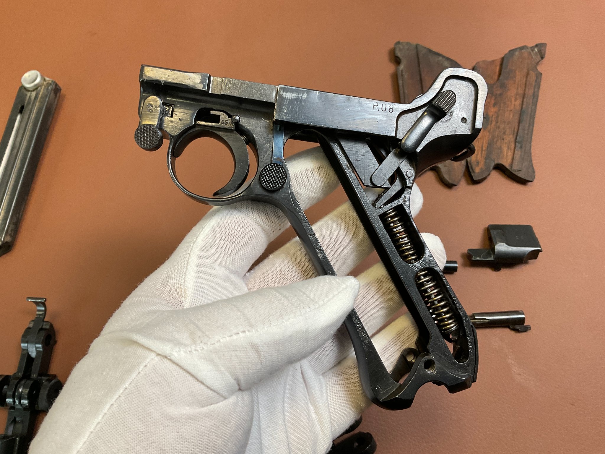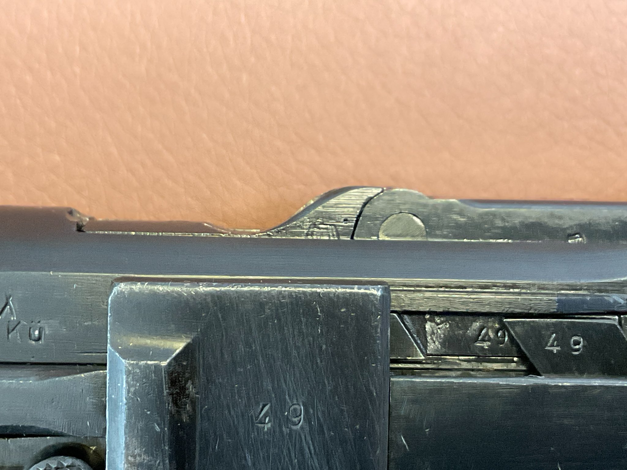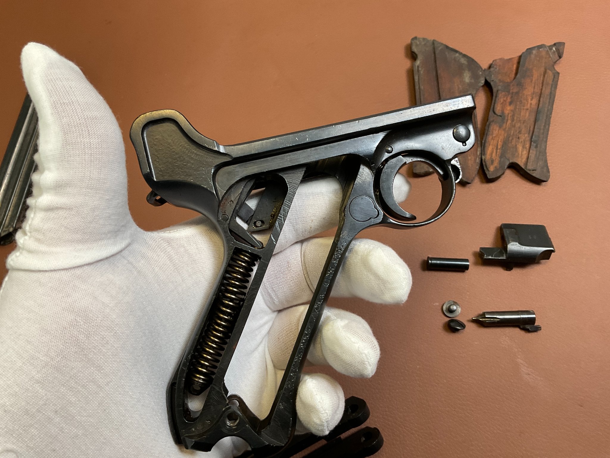 Griffschalen und Magazin sind nicht nummerngleich, ebenso der Auszieher.