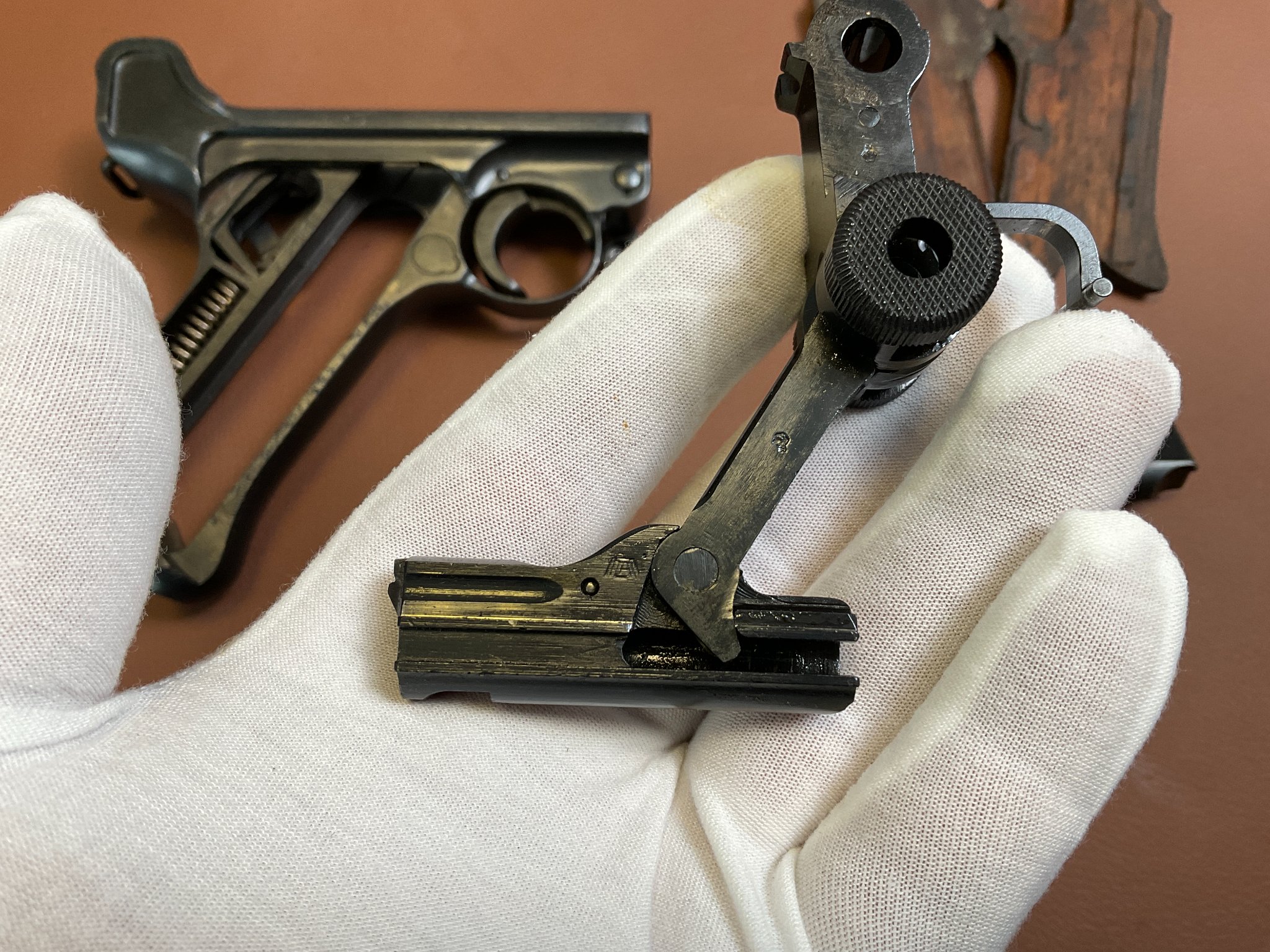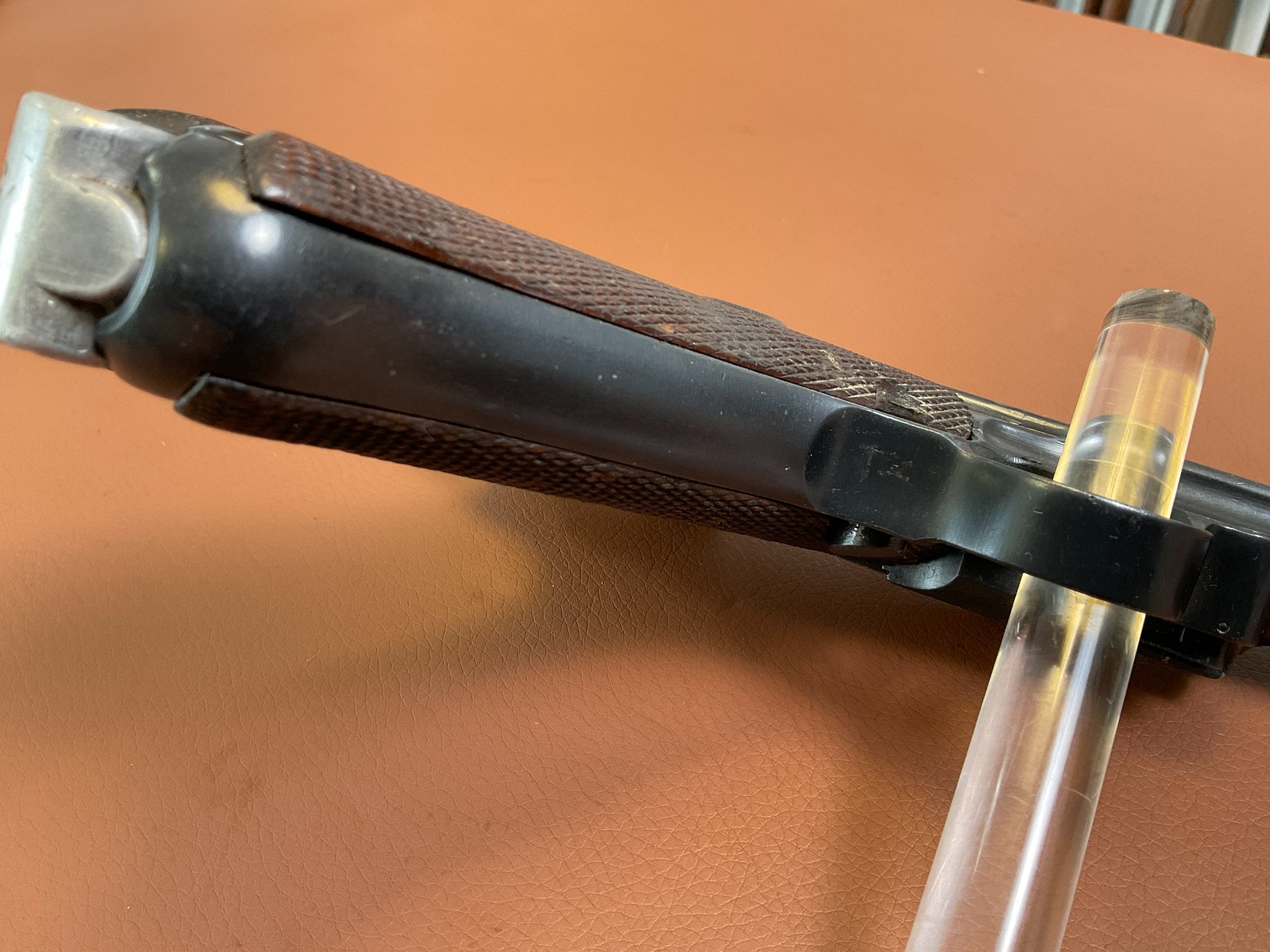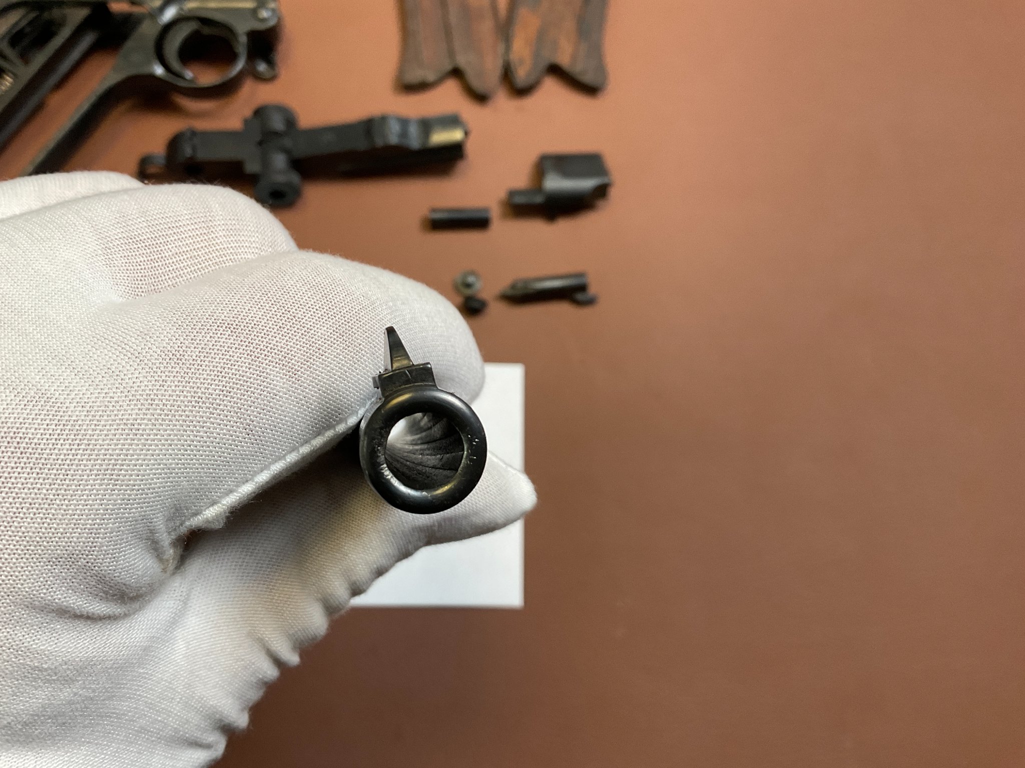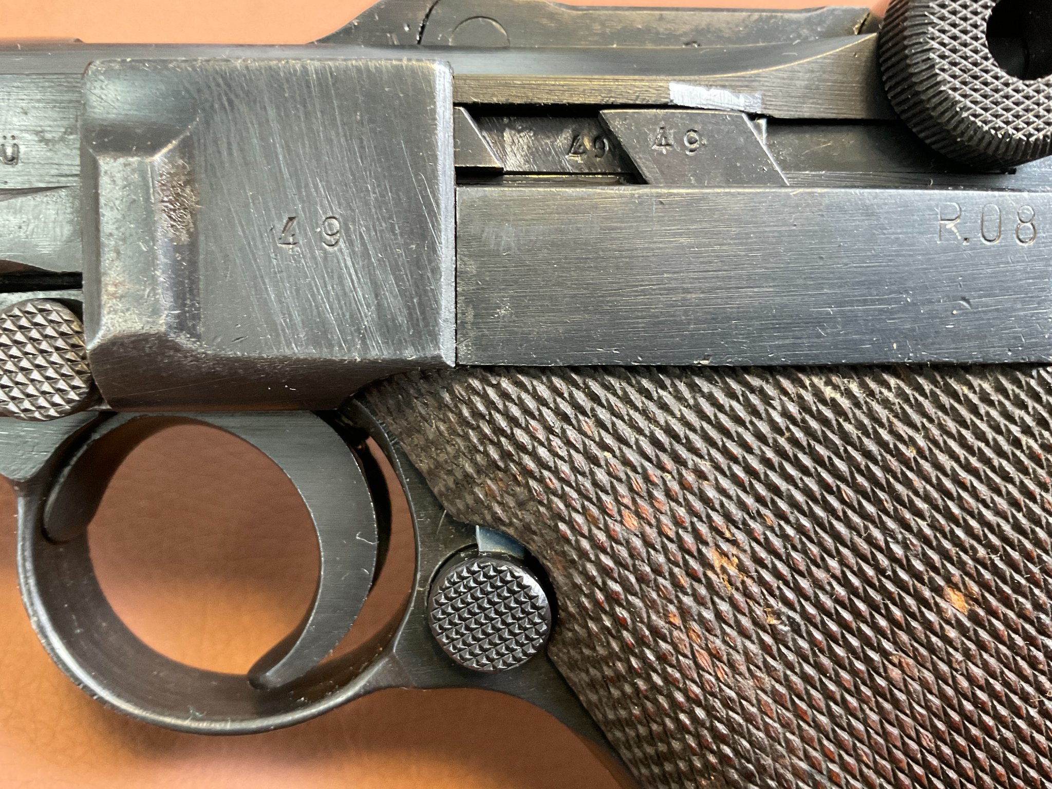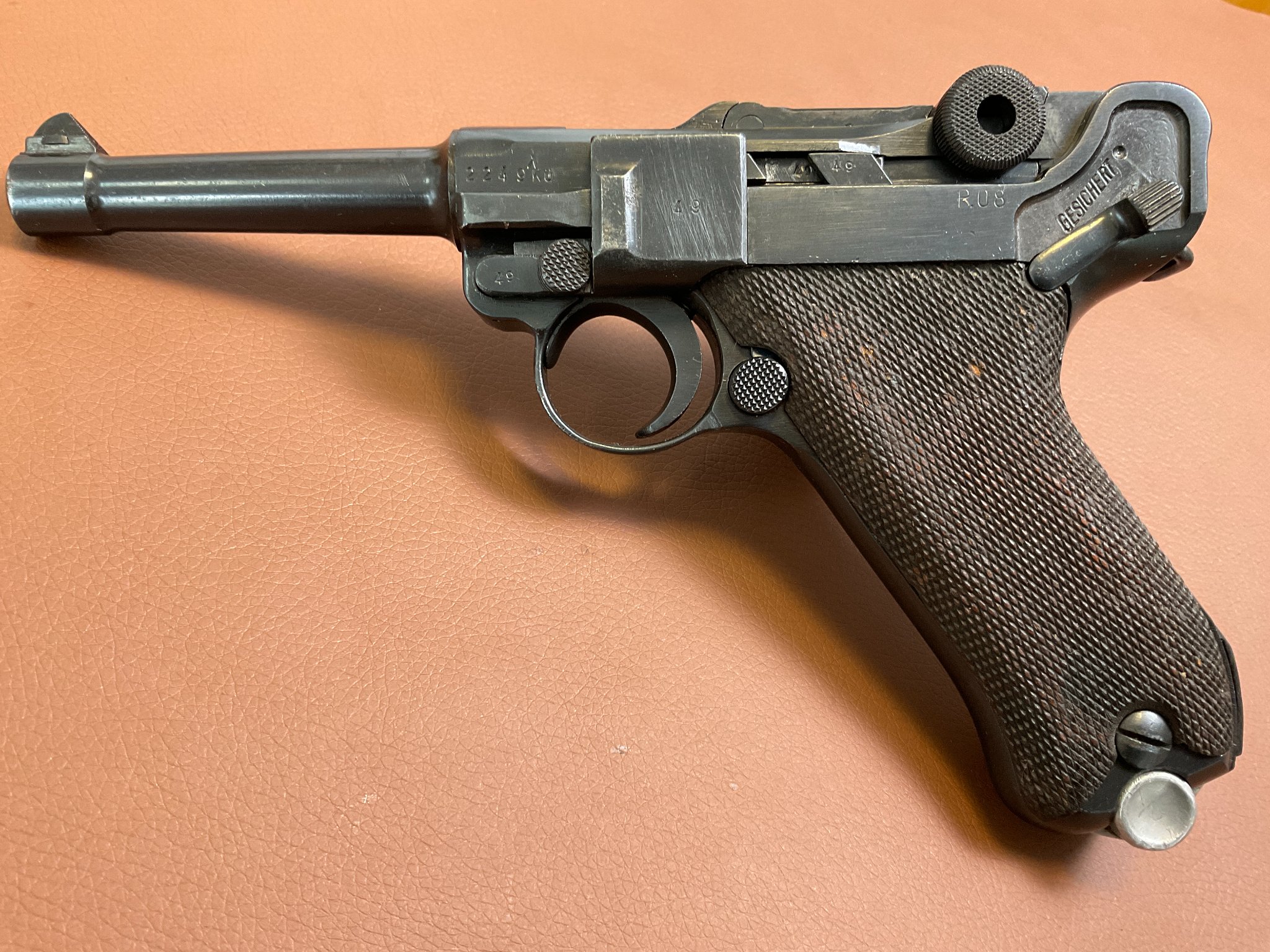 Griffschalen und Magazin sind nicht nummerngleich, ebenso der Auszieher.