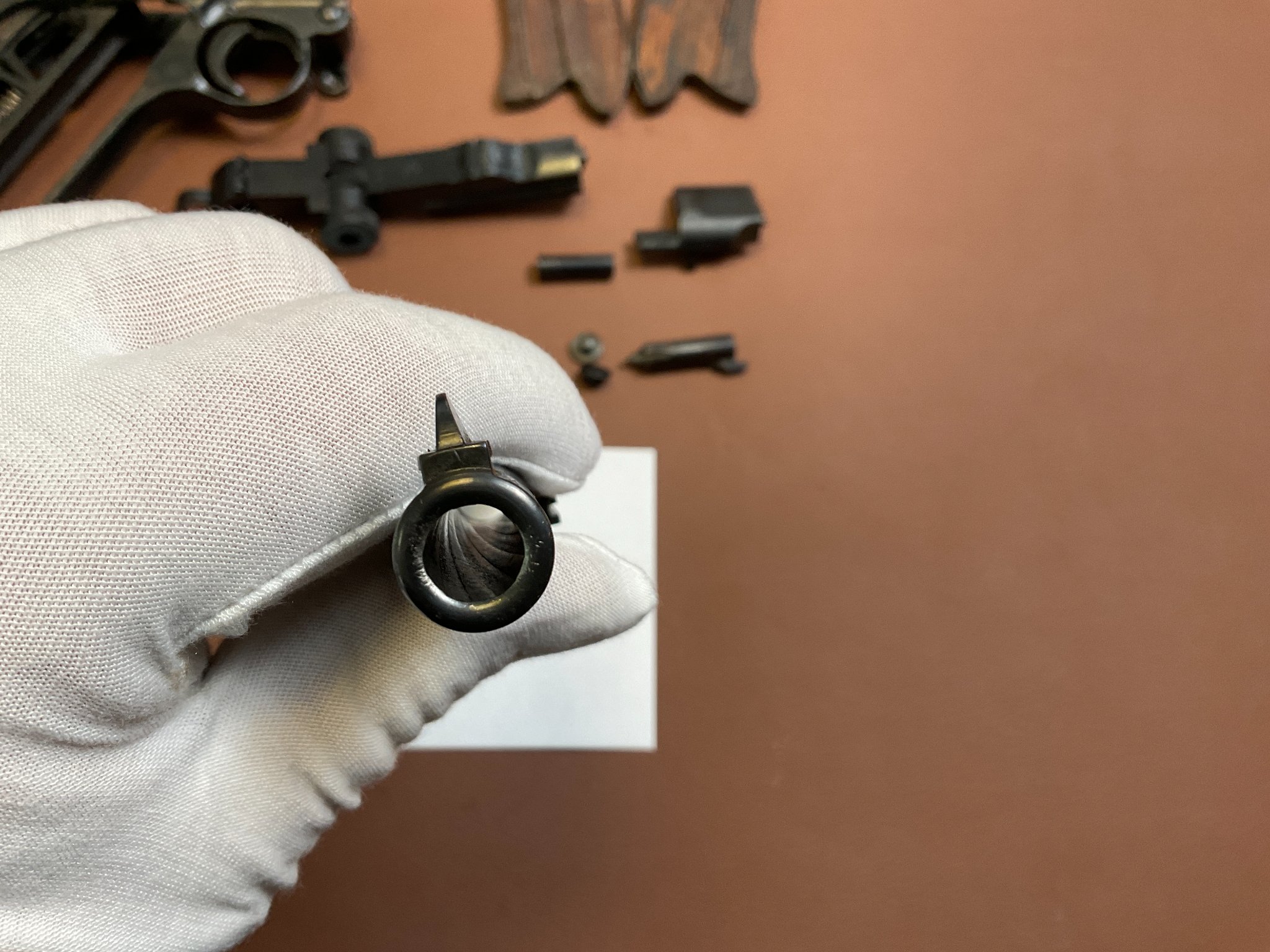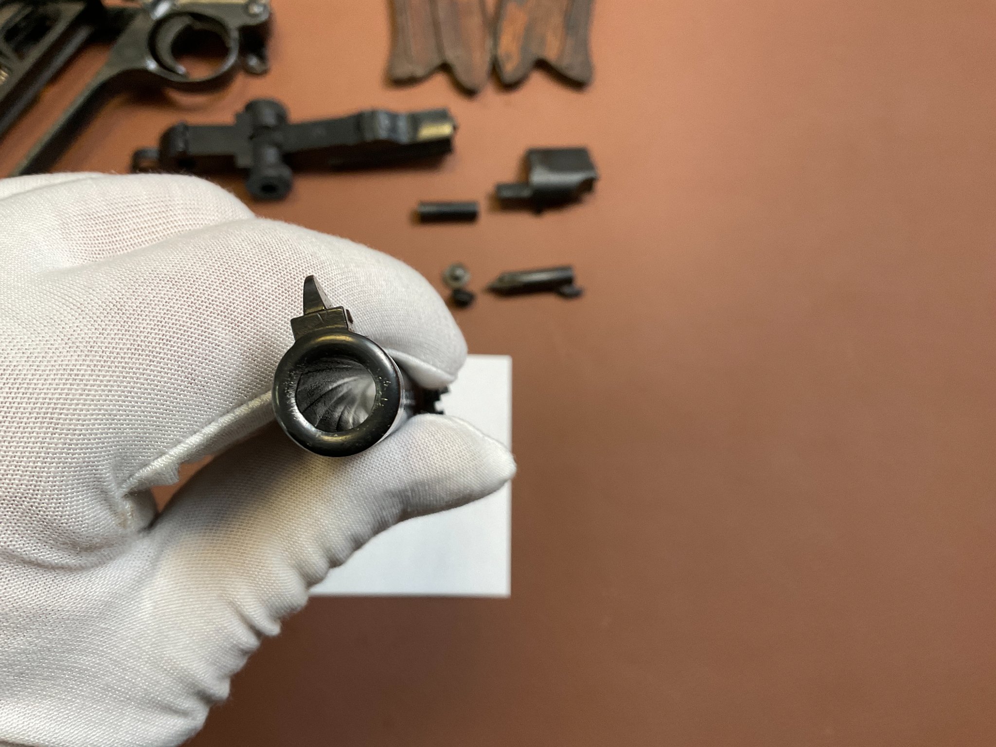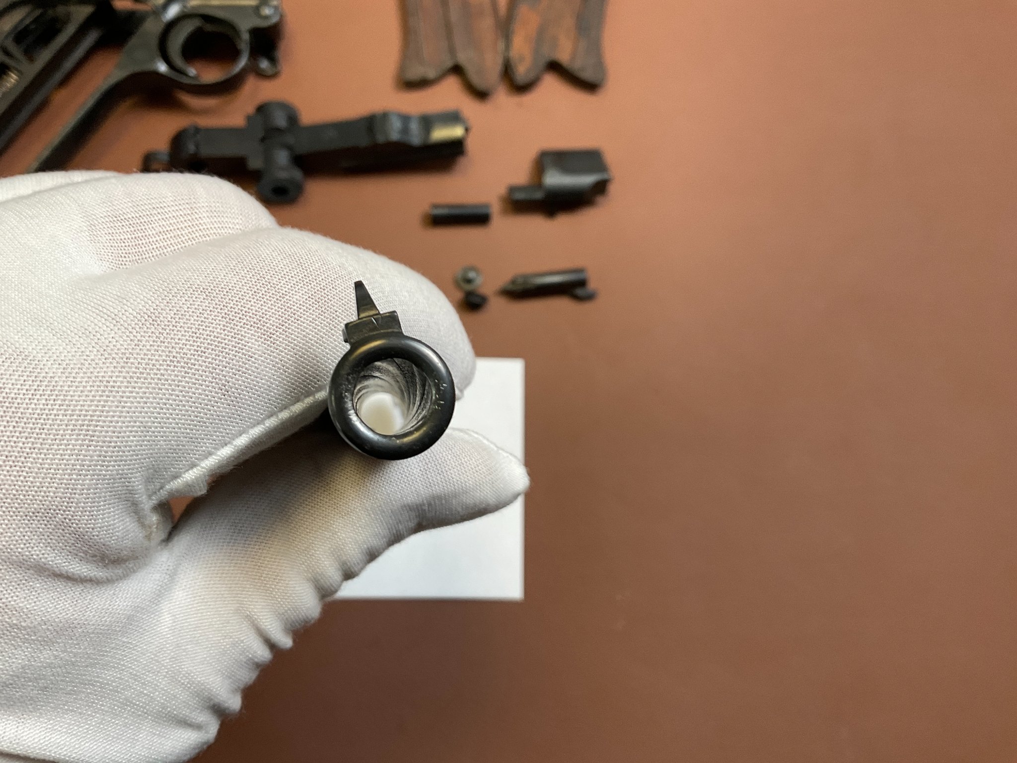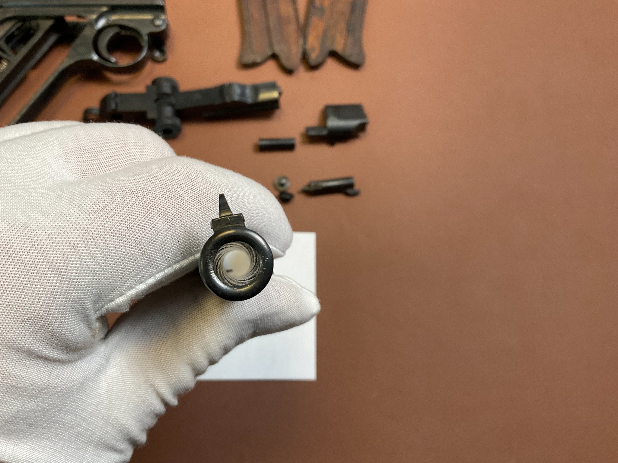 Griffschalen und Magazin sind nicht nummerngleich, ebenso der Auszieher.