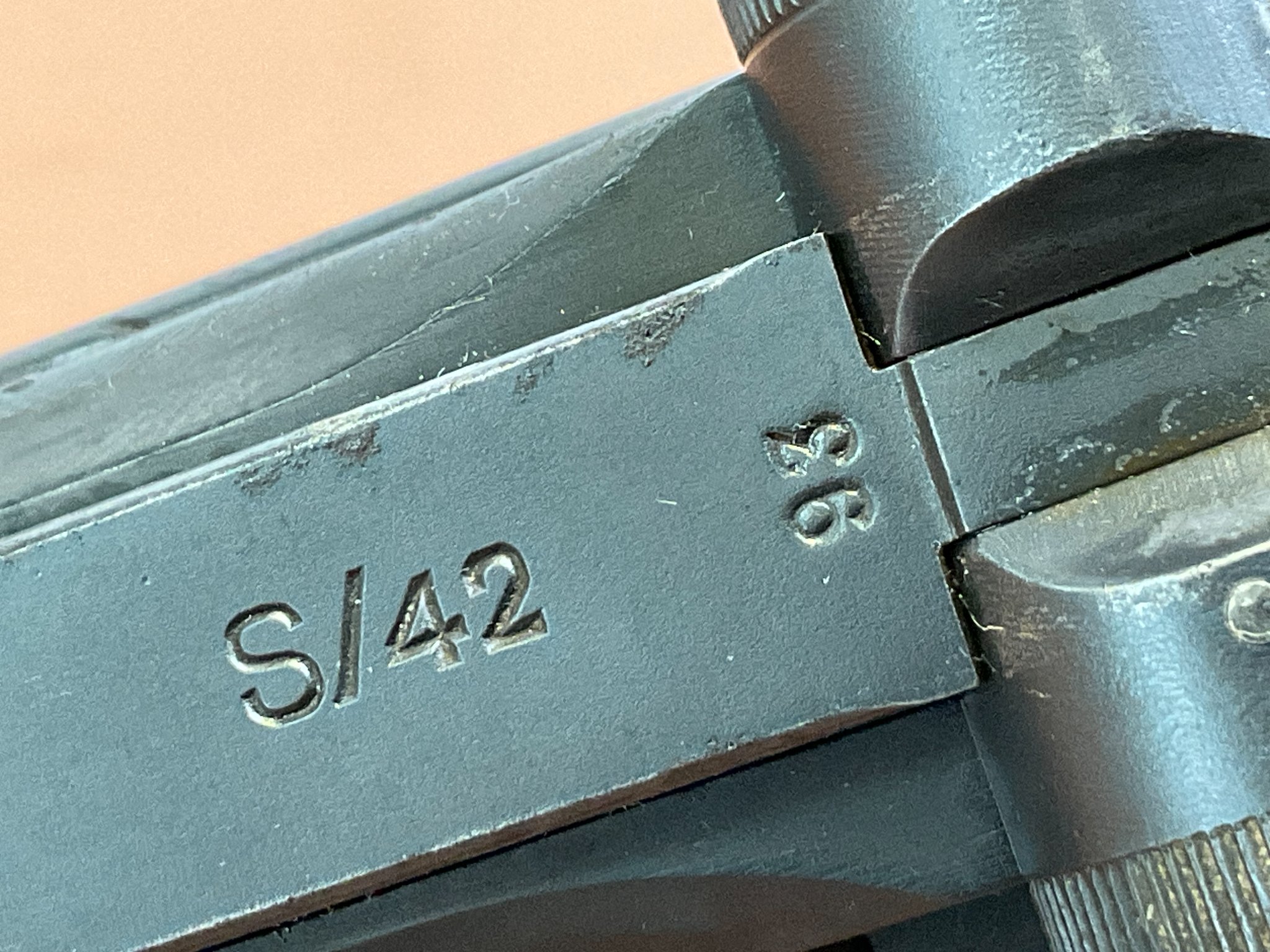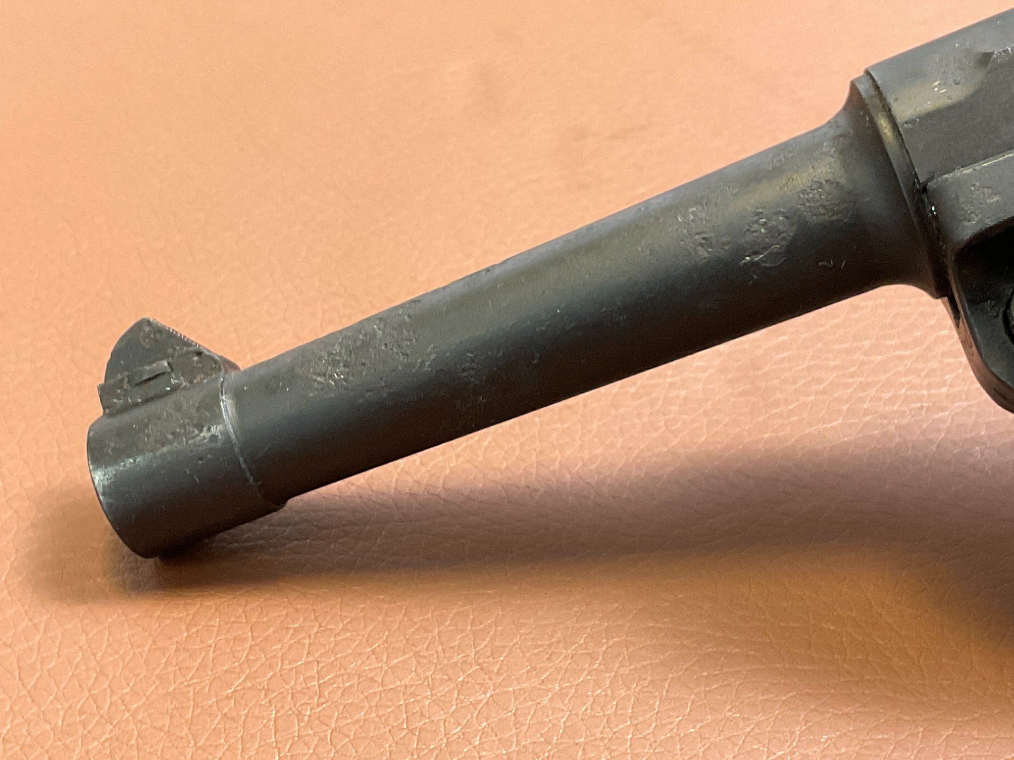 Am Lauf sind deutliche Rostnarben vorhanden, der Lauf ist stellenweise rau, Züge und Felder sind jedoch gut erhalten.