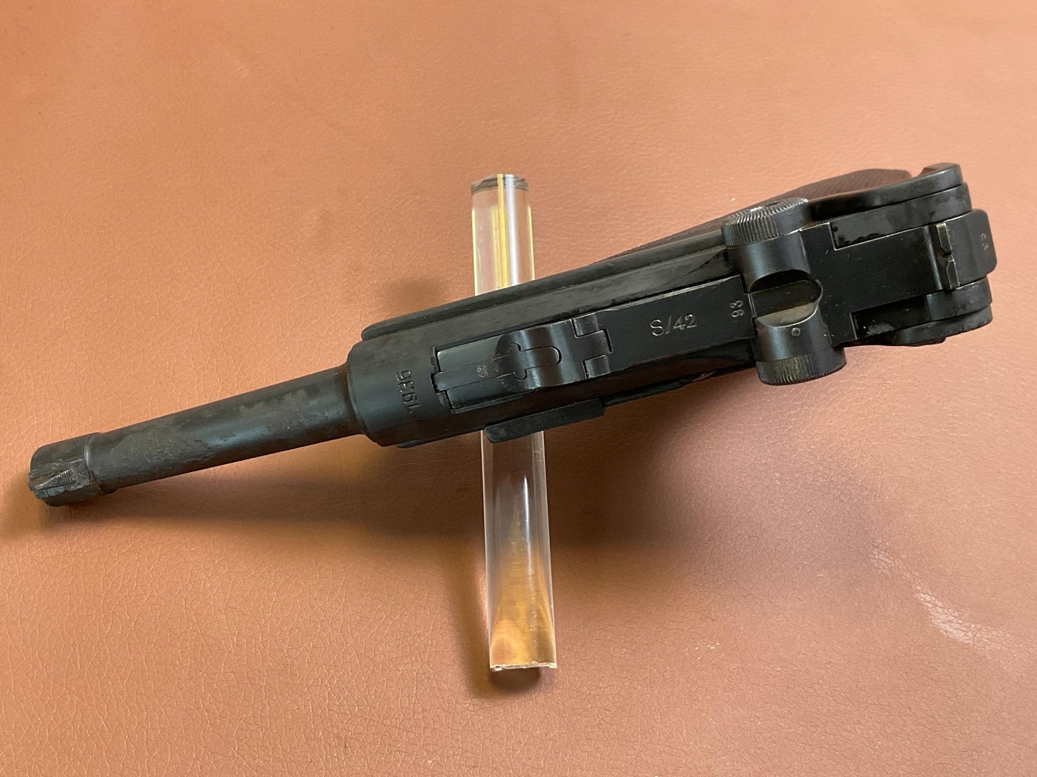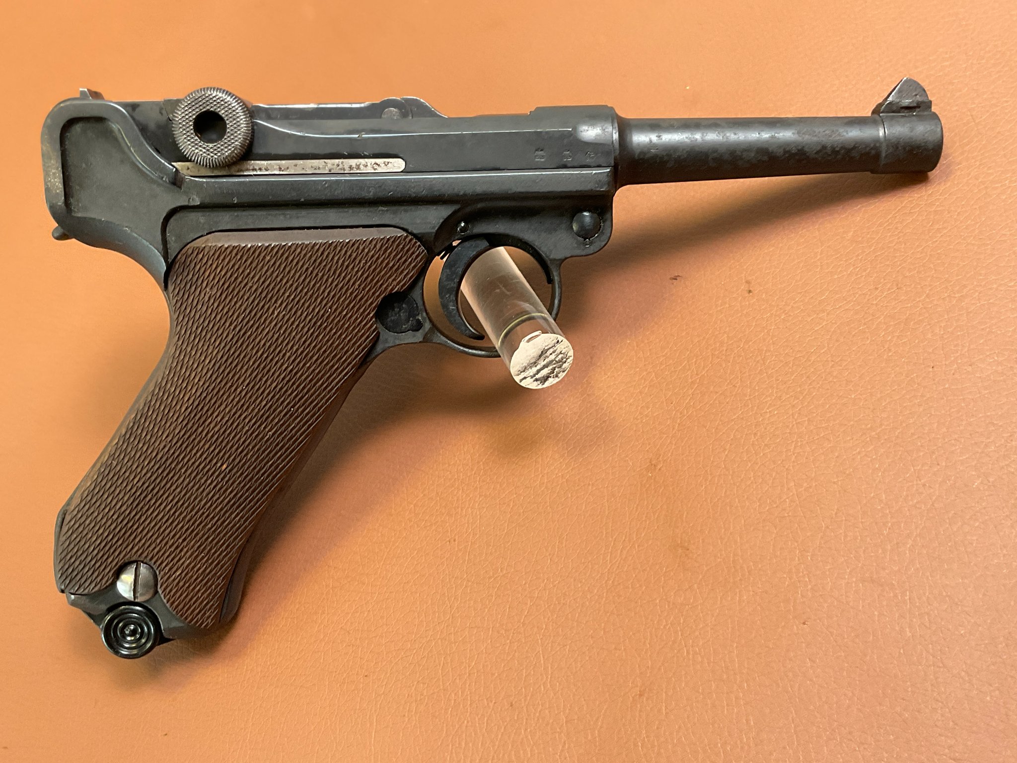Zum Verkauf steht eine restaurierte Pistole 08 von Mauser, gefertigt 1936 (Code S/42).