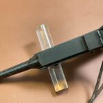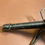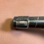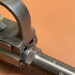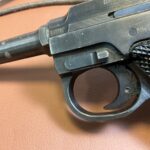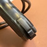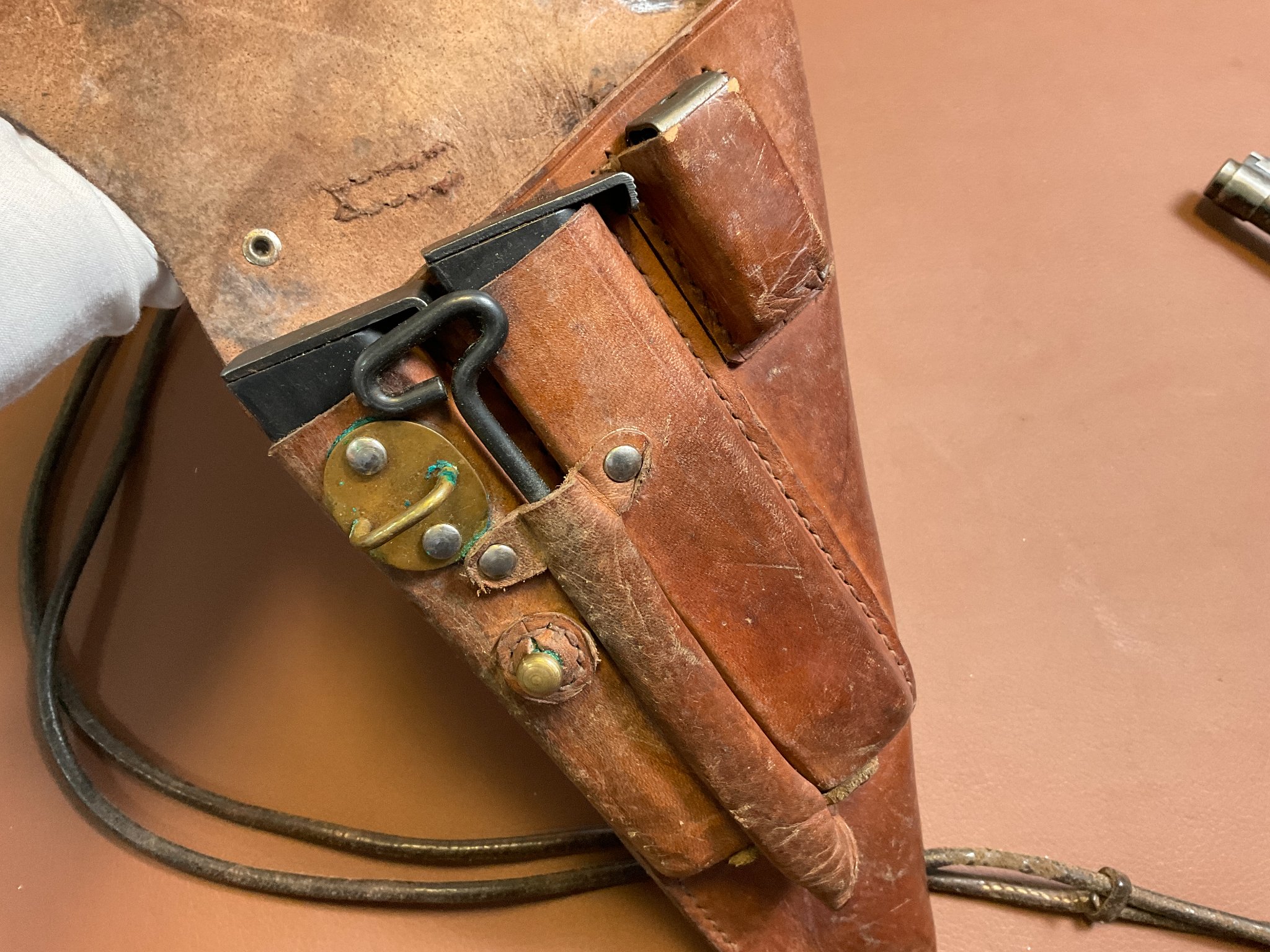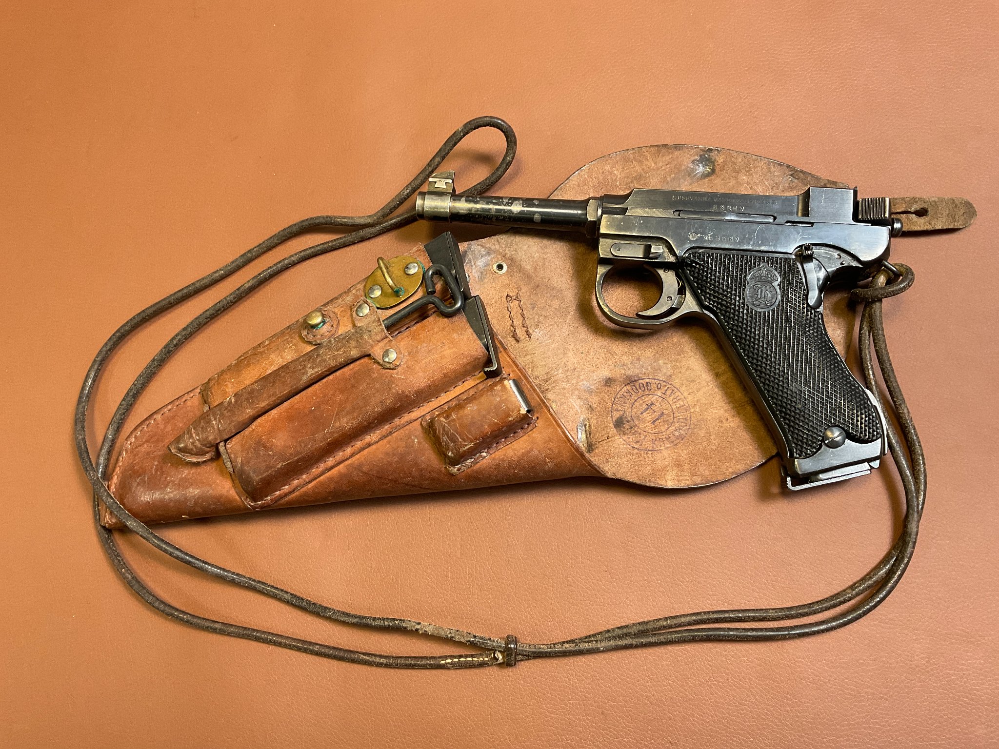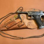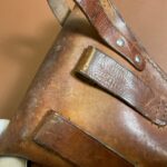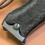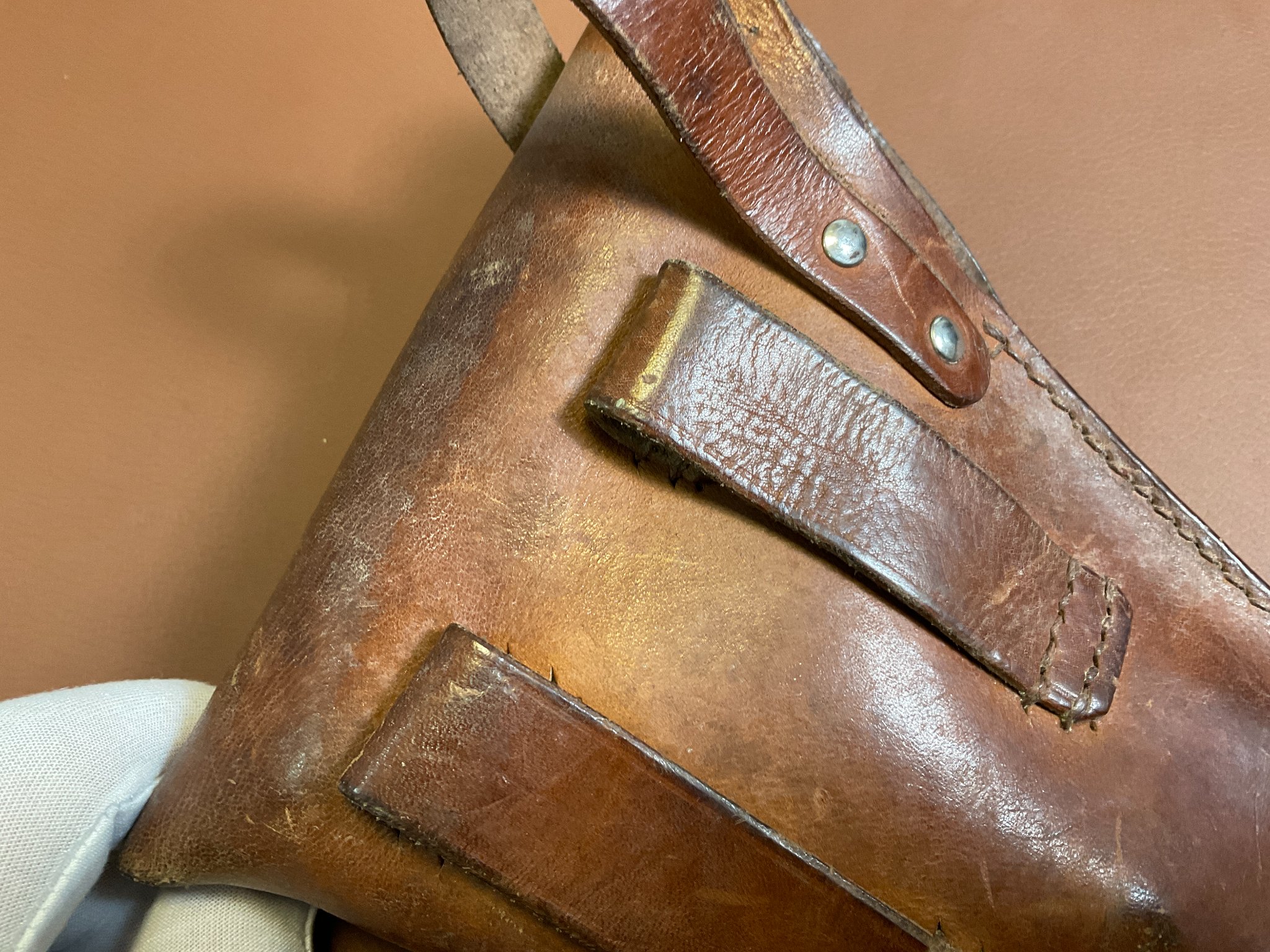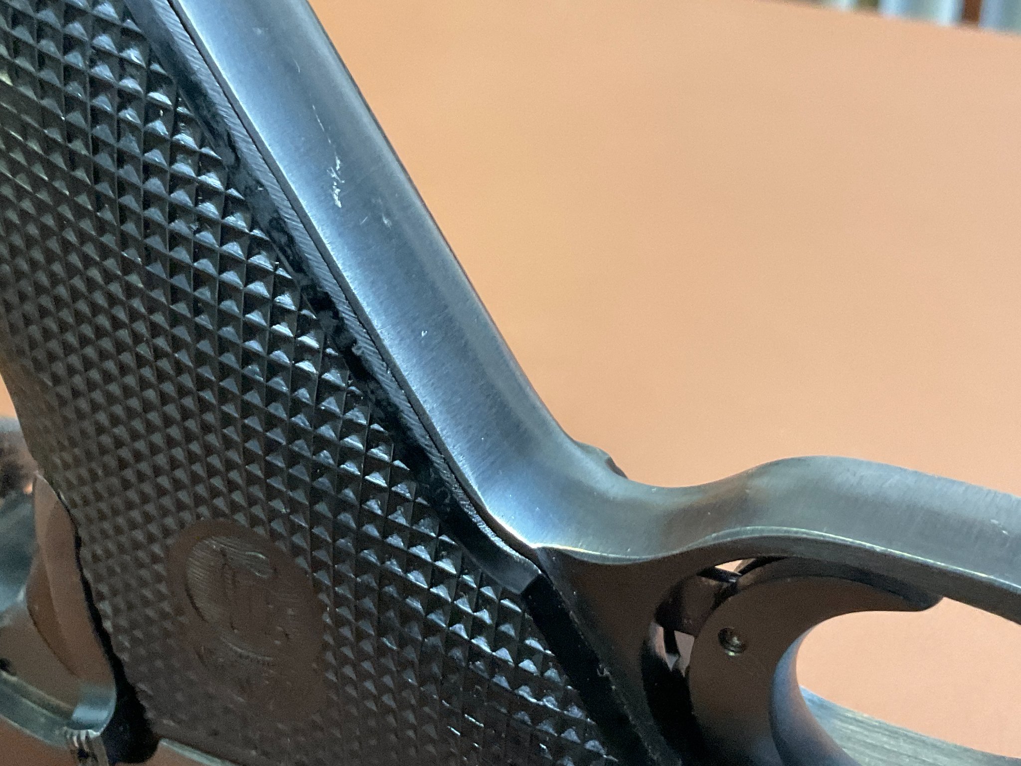 Zum Verkauf steht eine schwedische Militärpistole der Firma Husqvarna, Modell M40, im Kaliber 9 mm Luger. Beschuss Adler N. In originaler Pistolentasche mit Ersatzmagazin, Putzstock, Schraubenzieher und Fallriemen. Guter Zustand mit Handhabungs- und Tragespuren; leichte Verfärbungen der Brünierung am Lauf. Lauf innen spiegelblank, Züge und Felder sehr gut erhalten.