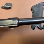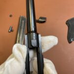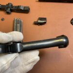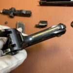 Die Waffe weist deutliche alters- und handhabungsbedingte Gebrauchsspuren auf, insbesondere an der originalen Brünierung.