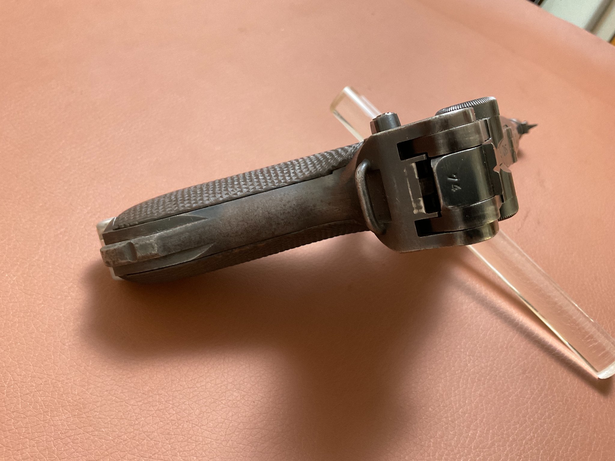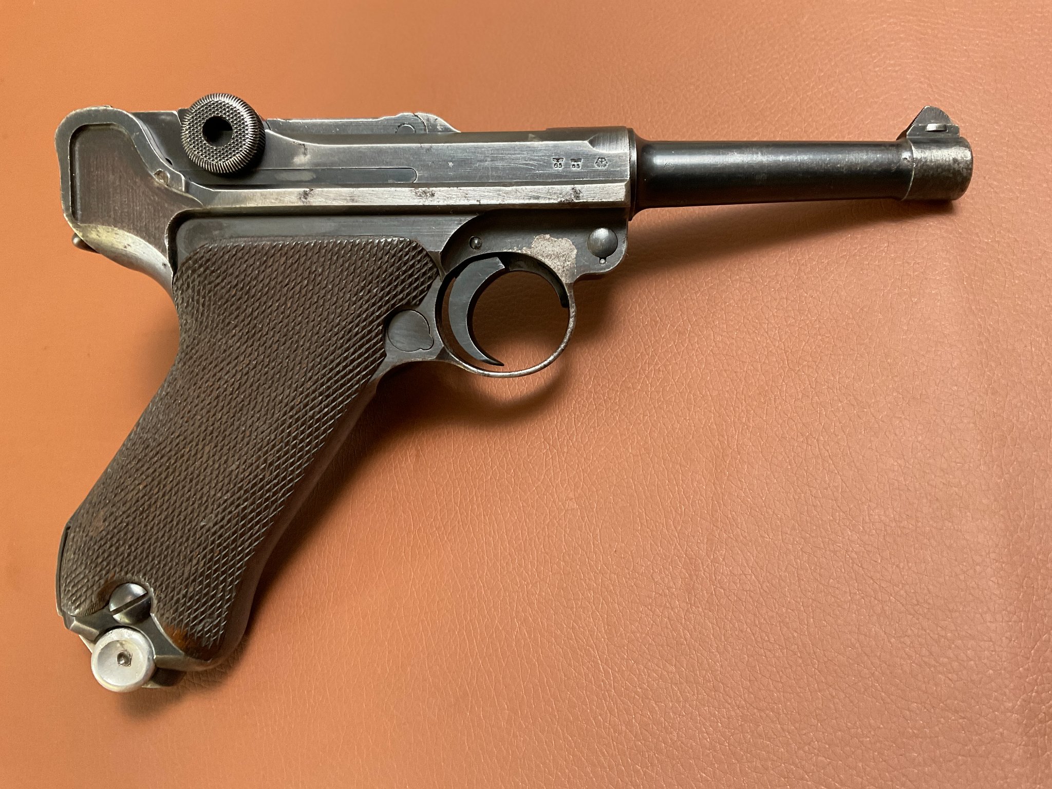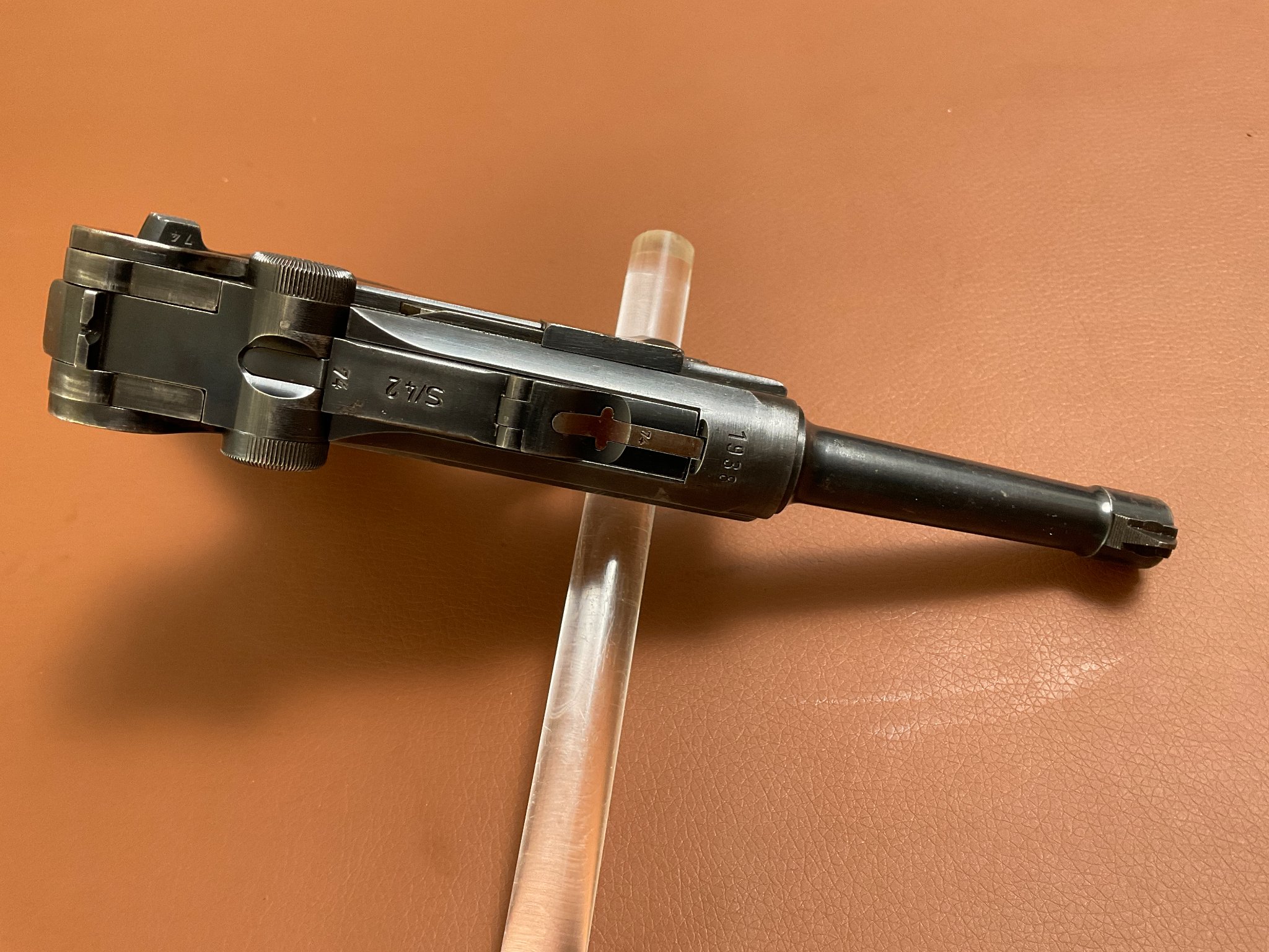Zum Verkauf steht eine Pistole Mauser P08, codiert mit S/42, gefertigt im Jahr 1938.