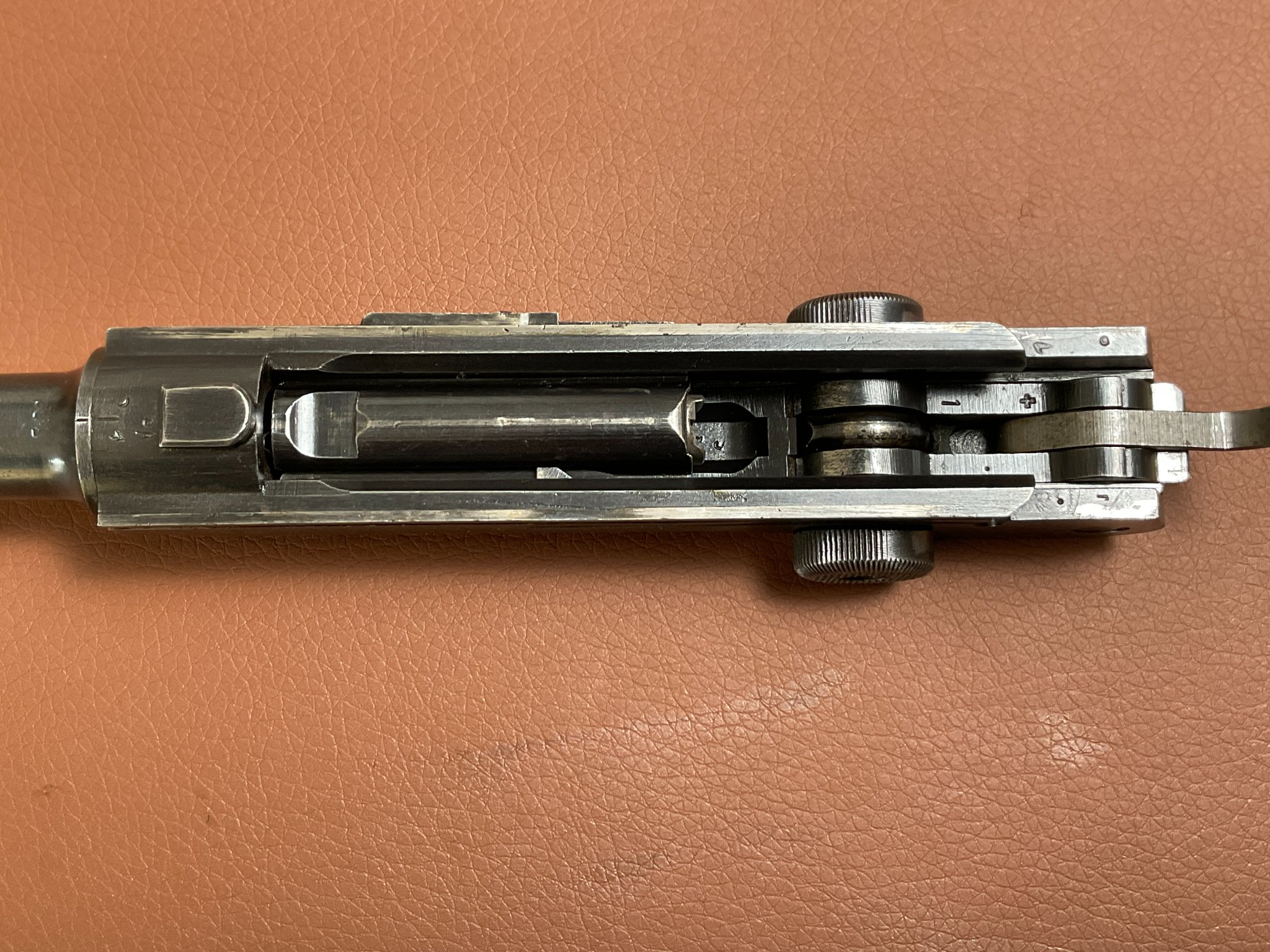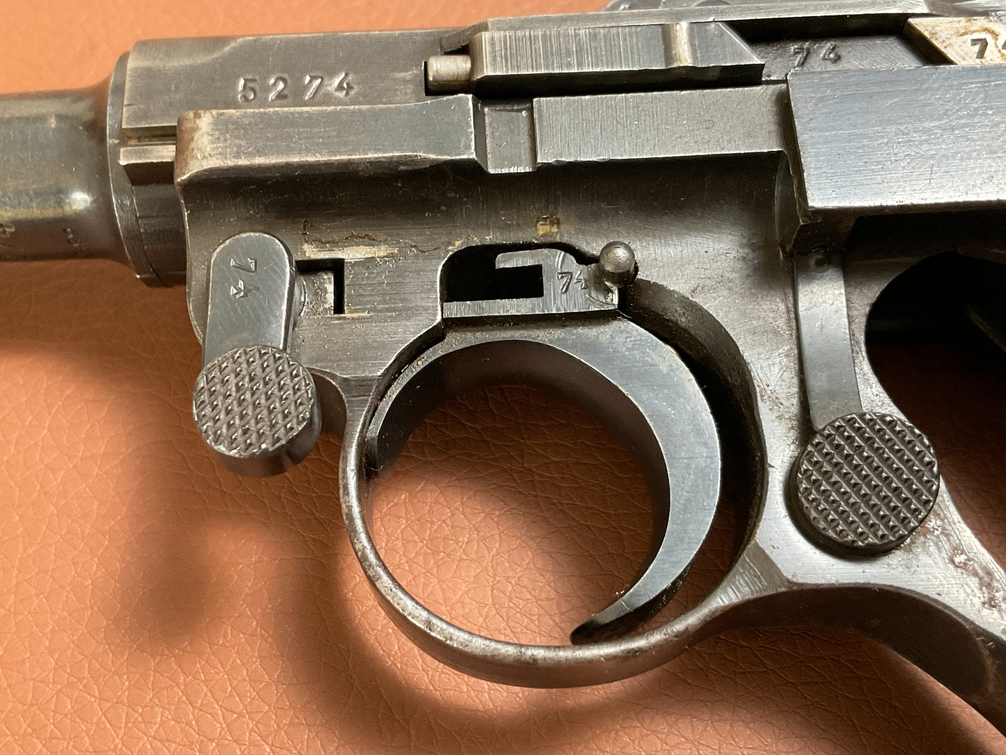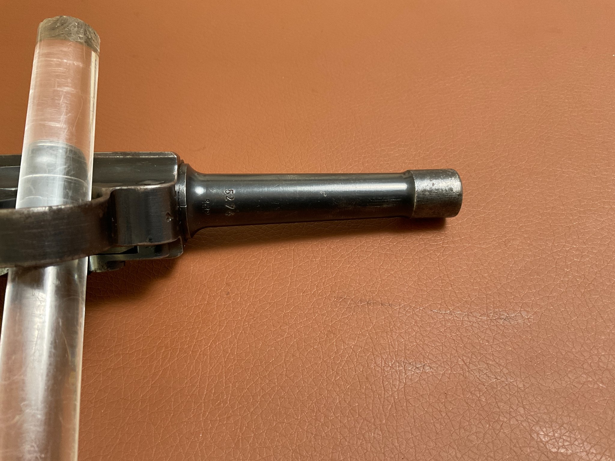 Zum Verkauf steht eine Pistole Mauser P08, codiert mit S/42, gefertigt im Jahr 1938.