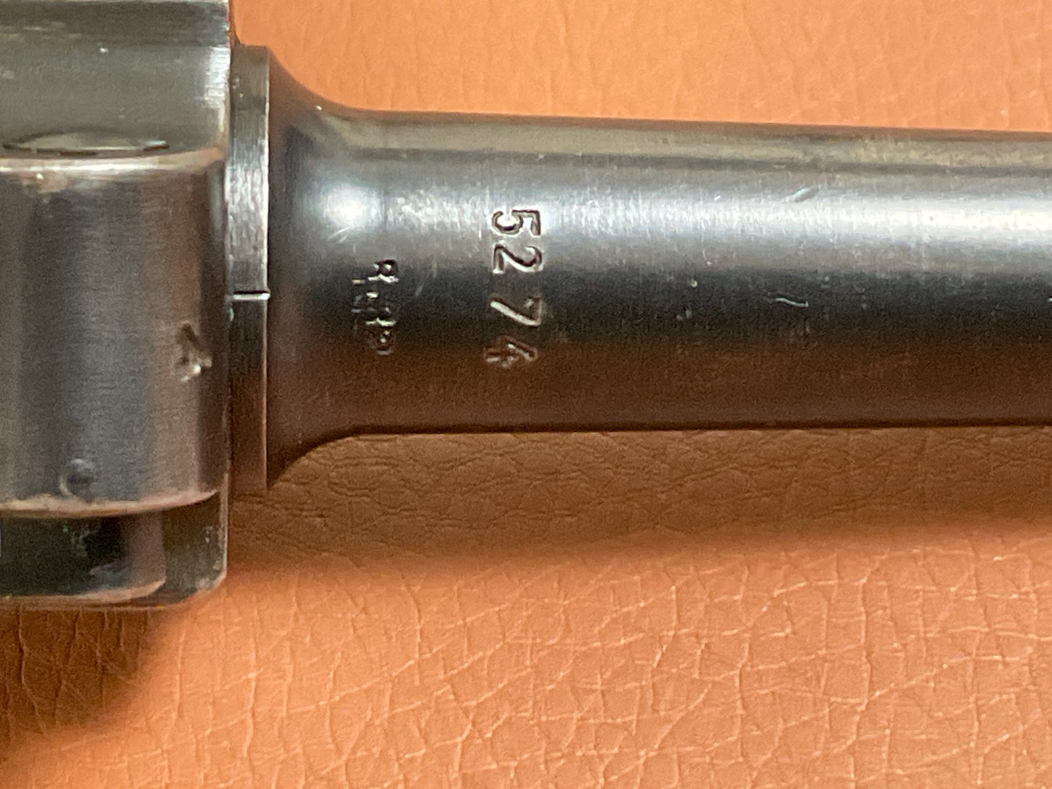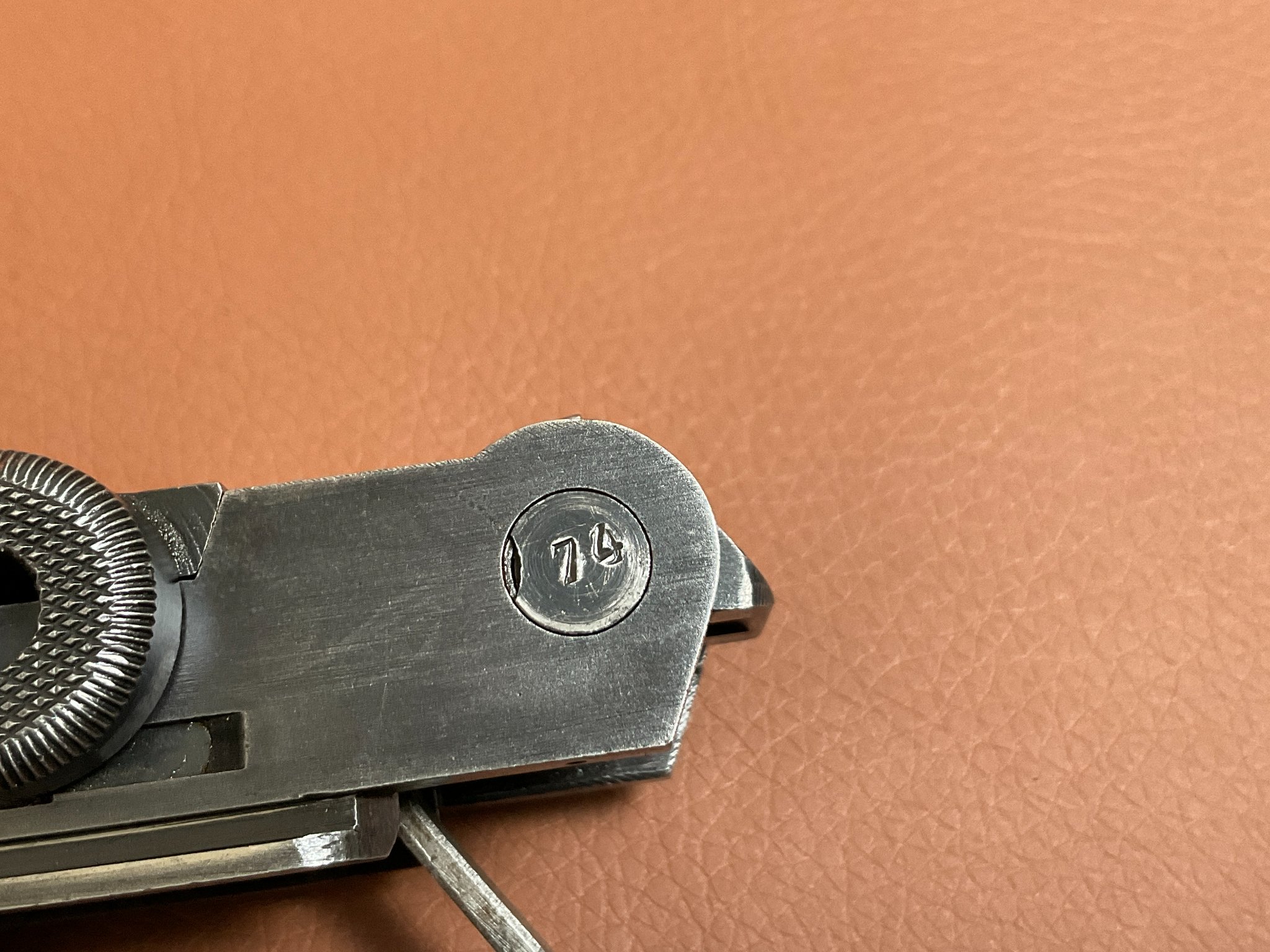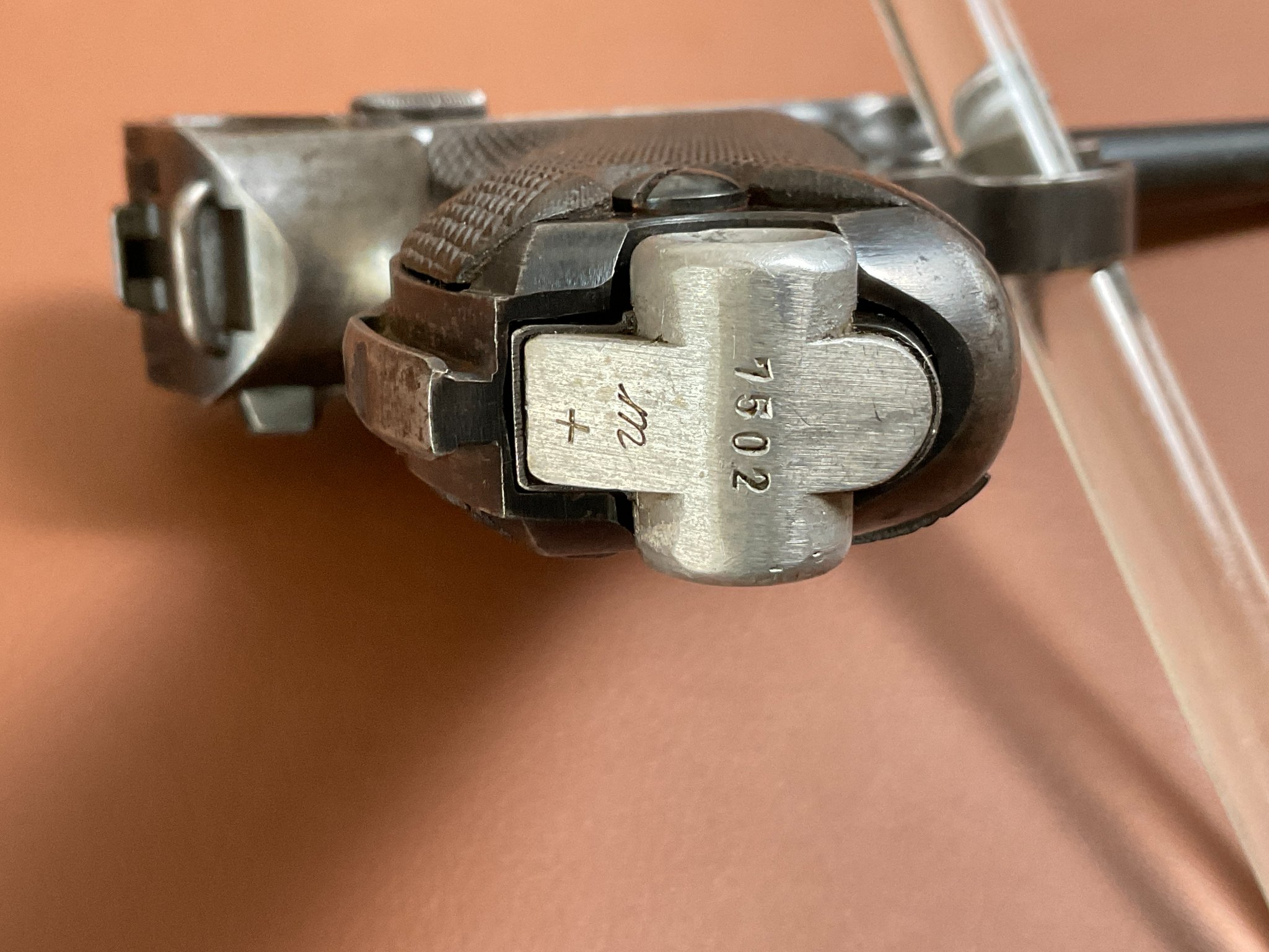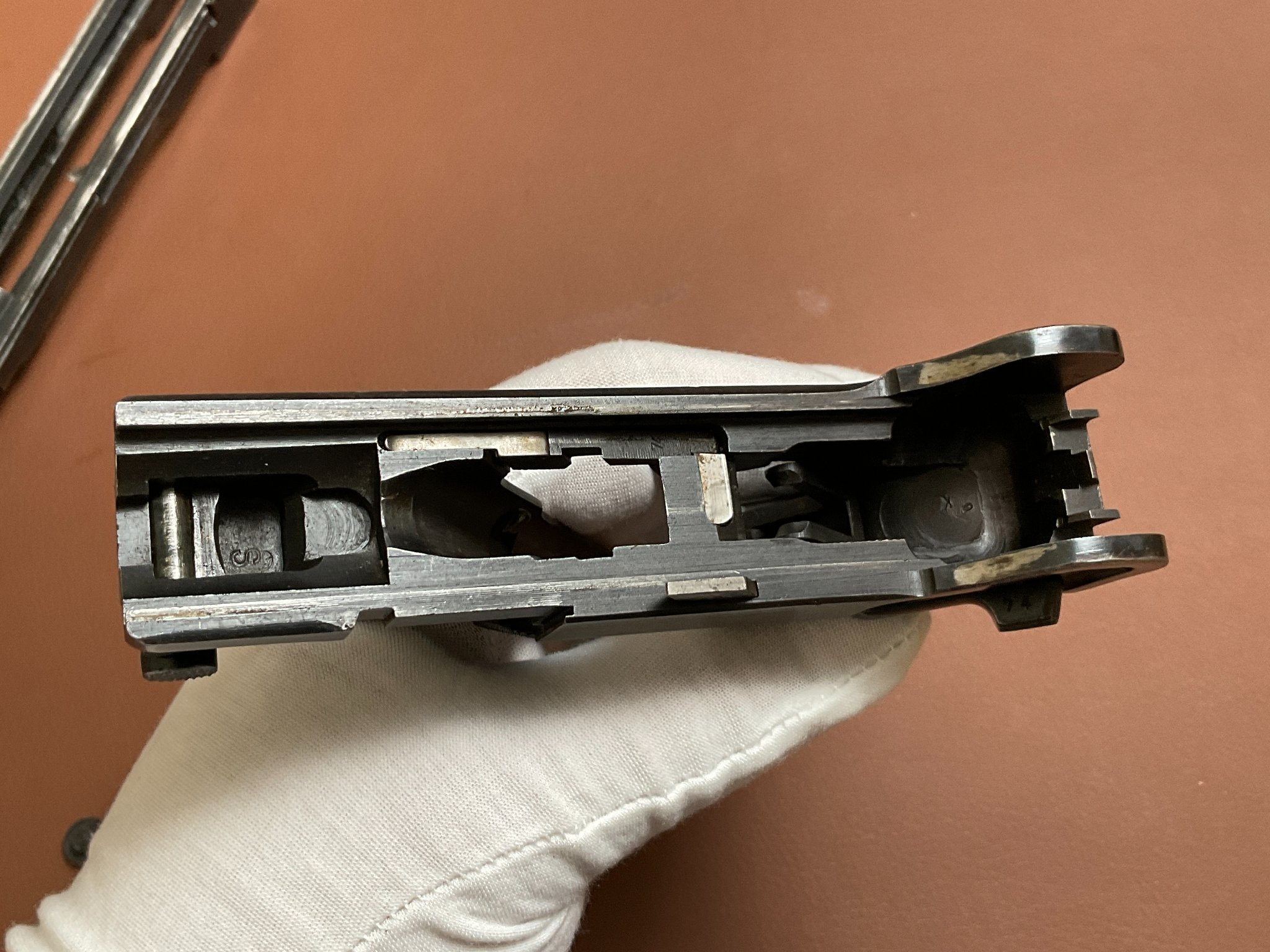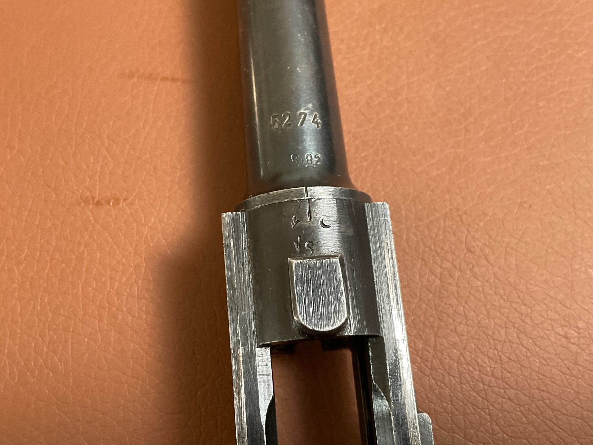 Die Waffe ist tauchbrüniert und weist deutliche Trage- und Handhabungsspuren an der originalen Brünierung auf. Sie ist nummerngleich, mit Ausnahme des Magazins.