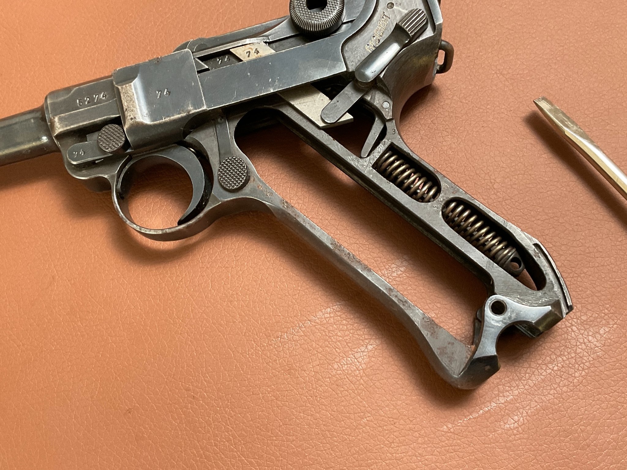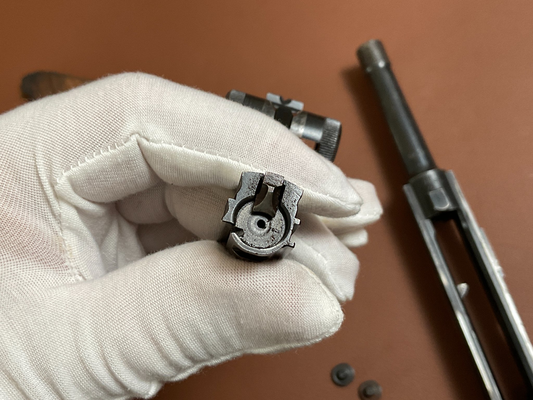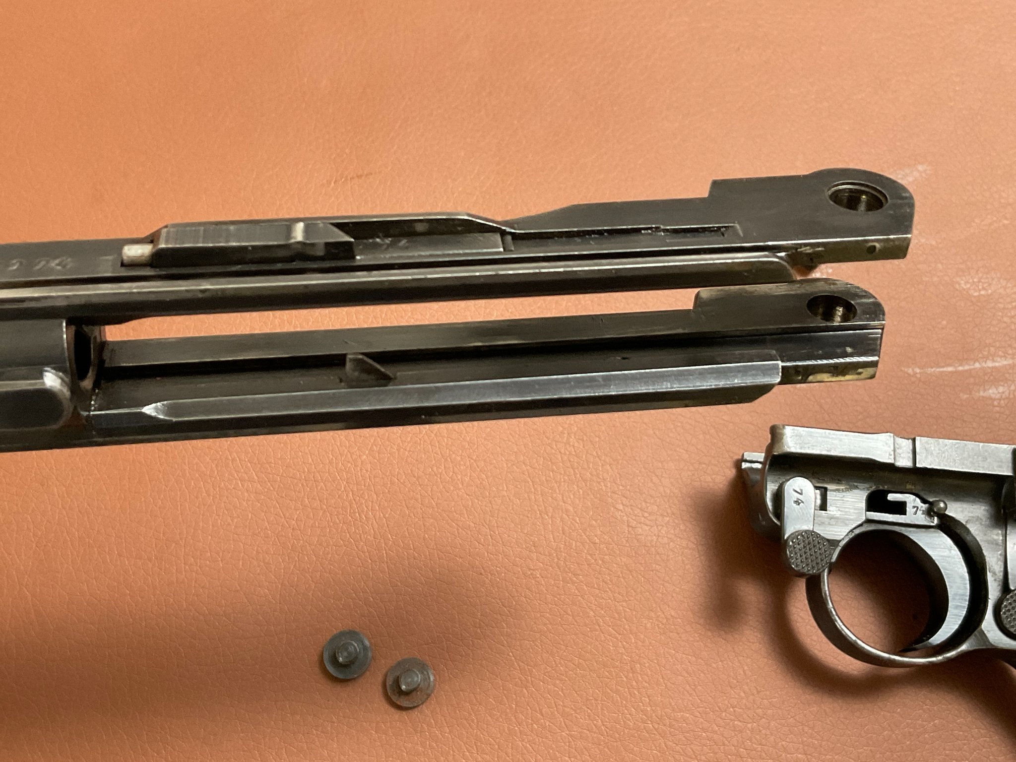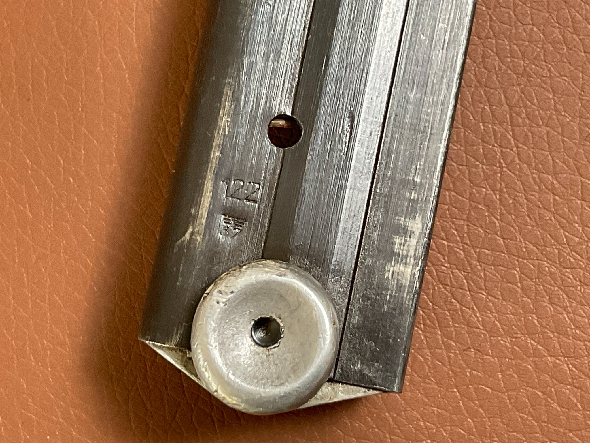 Die Waffe ist tauchbrüniert und weist deutliche Trage- und Handhabungsspuren an der originalen Brünierung auf. Sie ist nummerngleich, mit Ausnahme des Magazins.