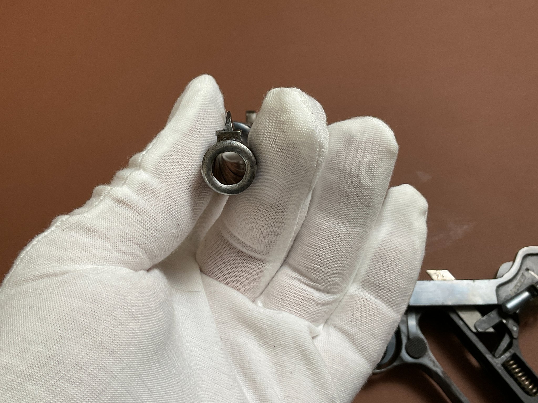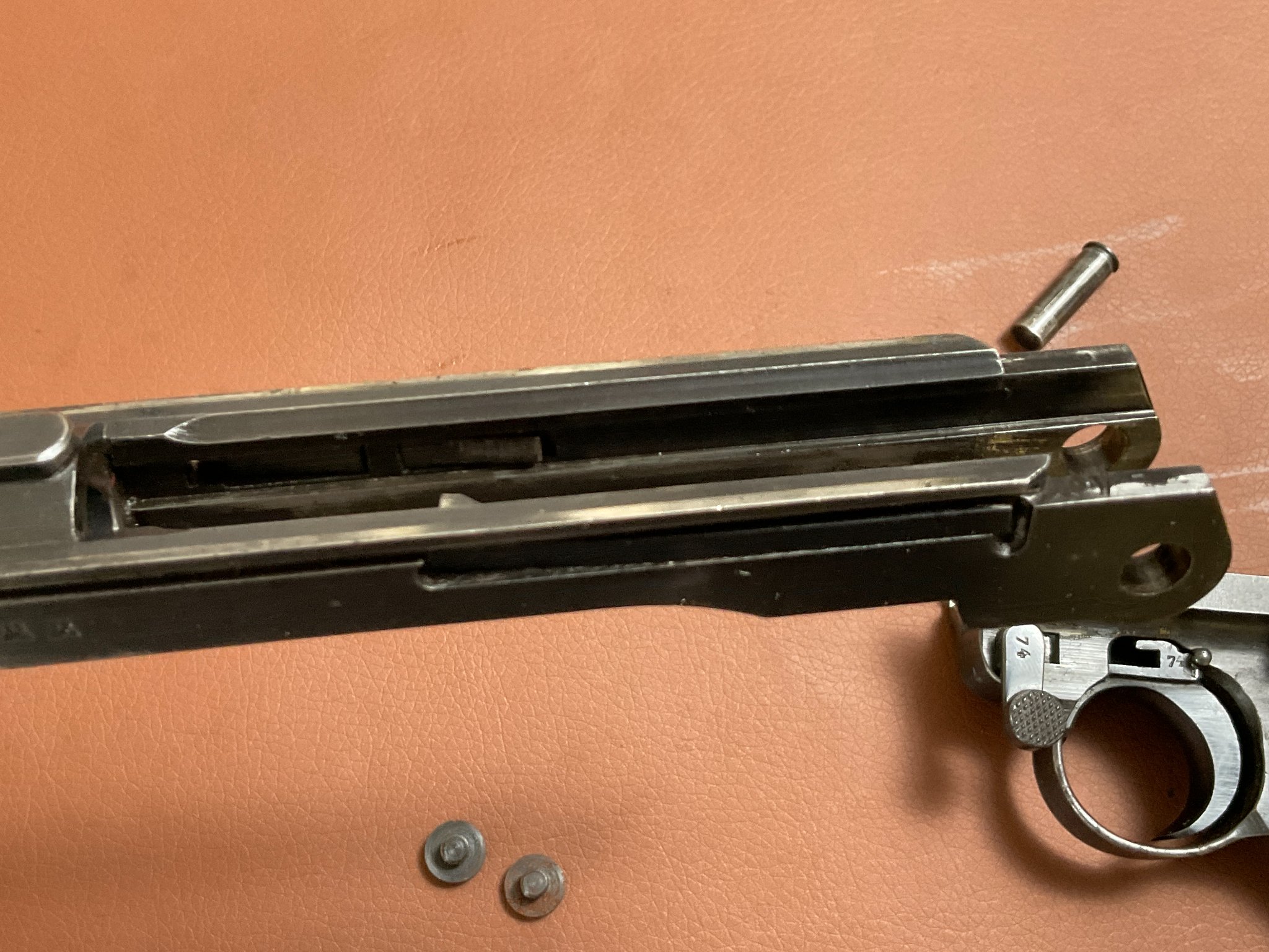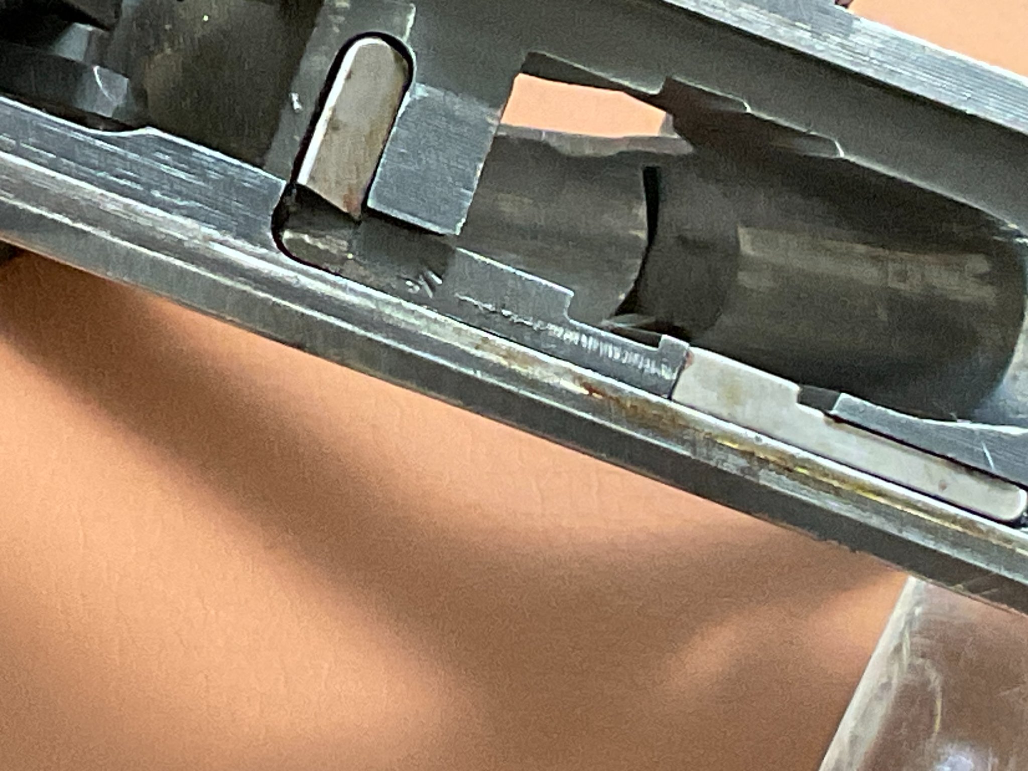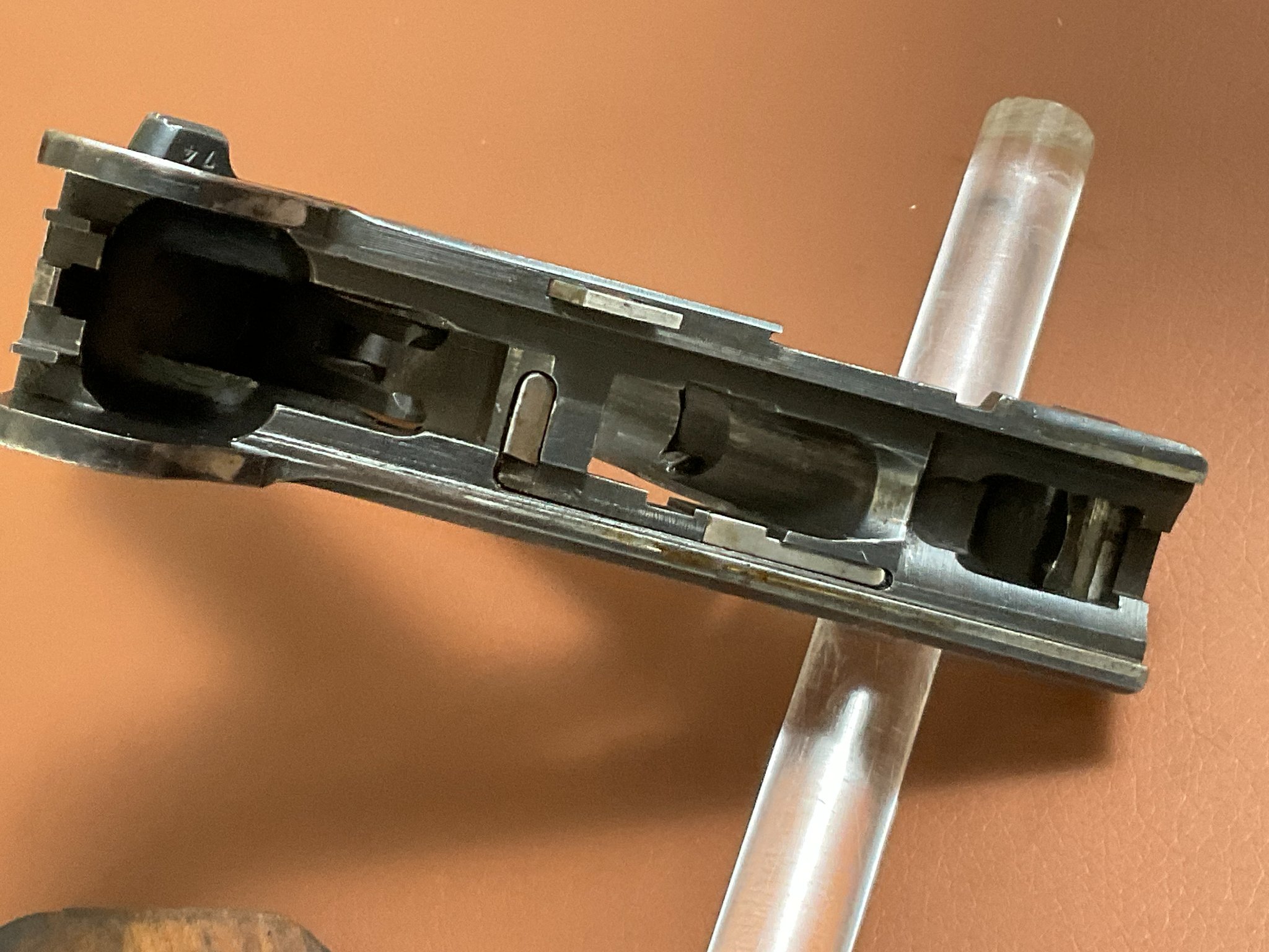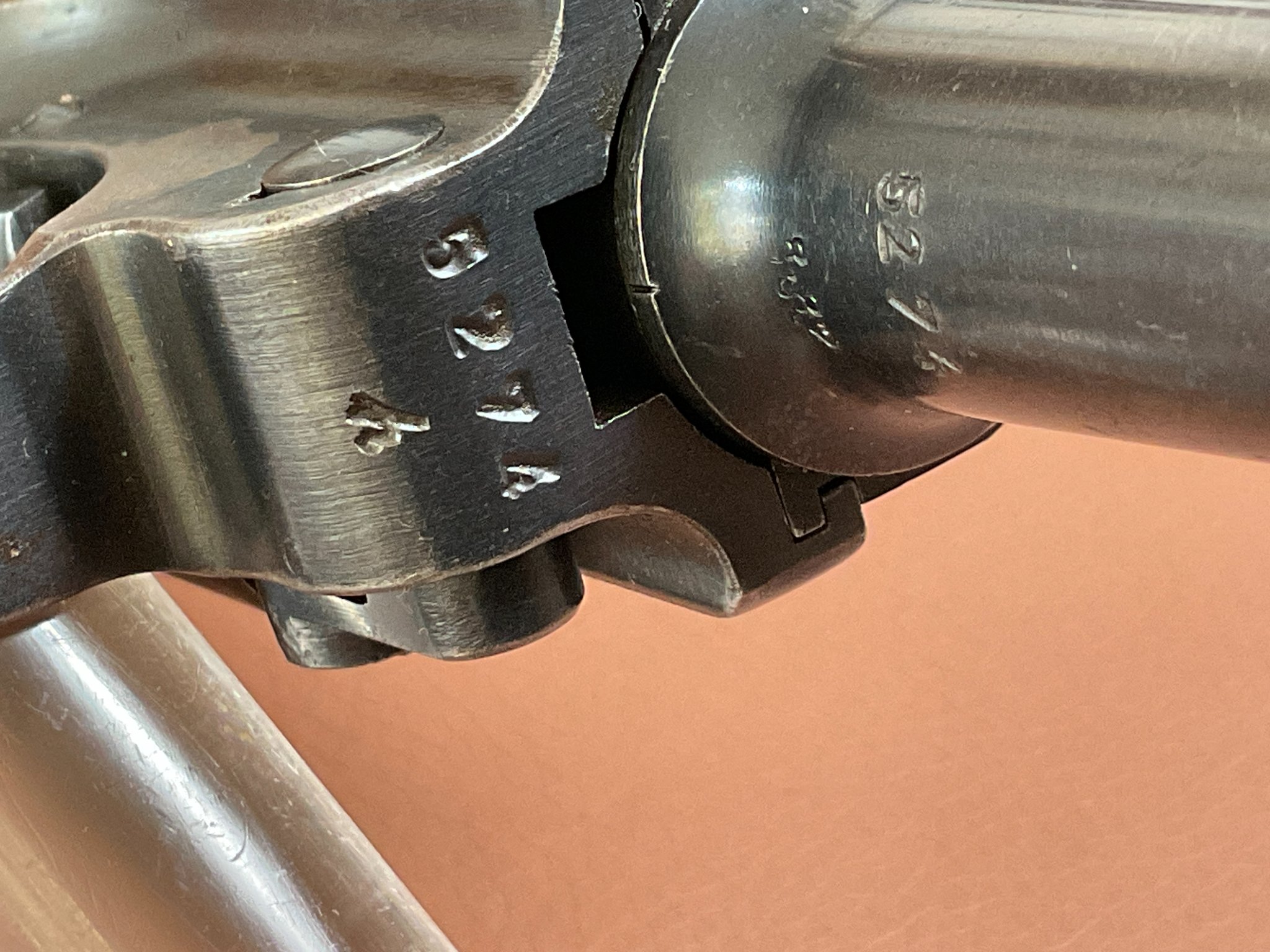Die Waffe ist tauchbrüniert und weist deutliche Trage- und Handhabungsspuren an der originalen Brünierung auf. Sie ist nummerngleich, mit Ausnahme des Magazins.