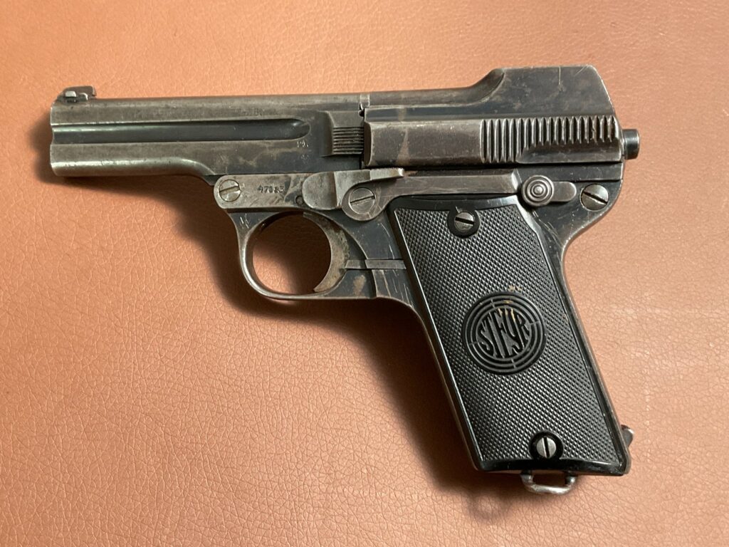 Zum Verkauf steht eine Pistole Steyr Modell 1909/34 im Kaliber 7,65 mm Browning.