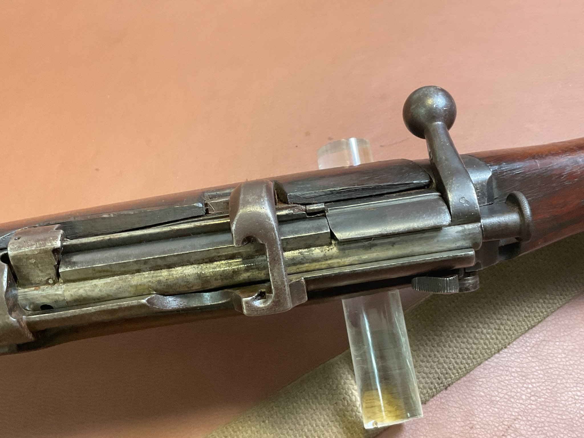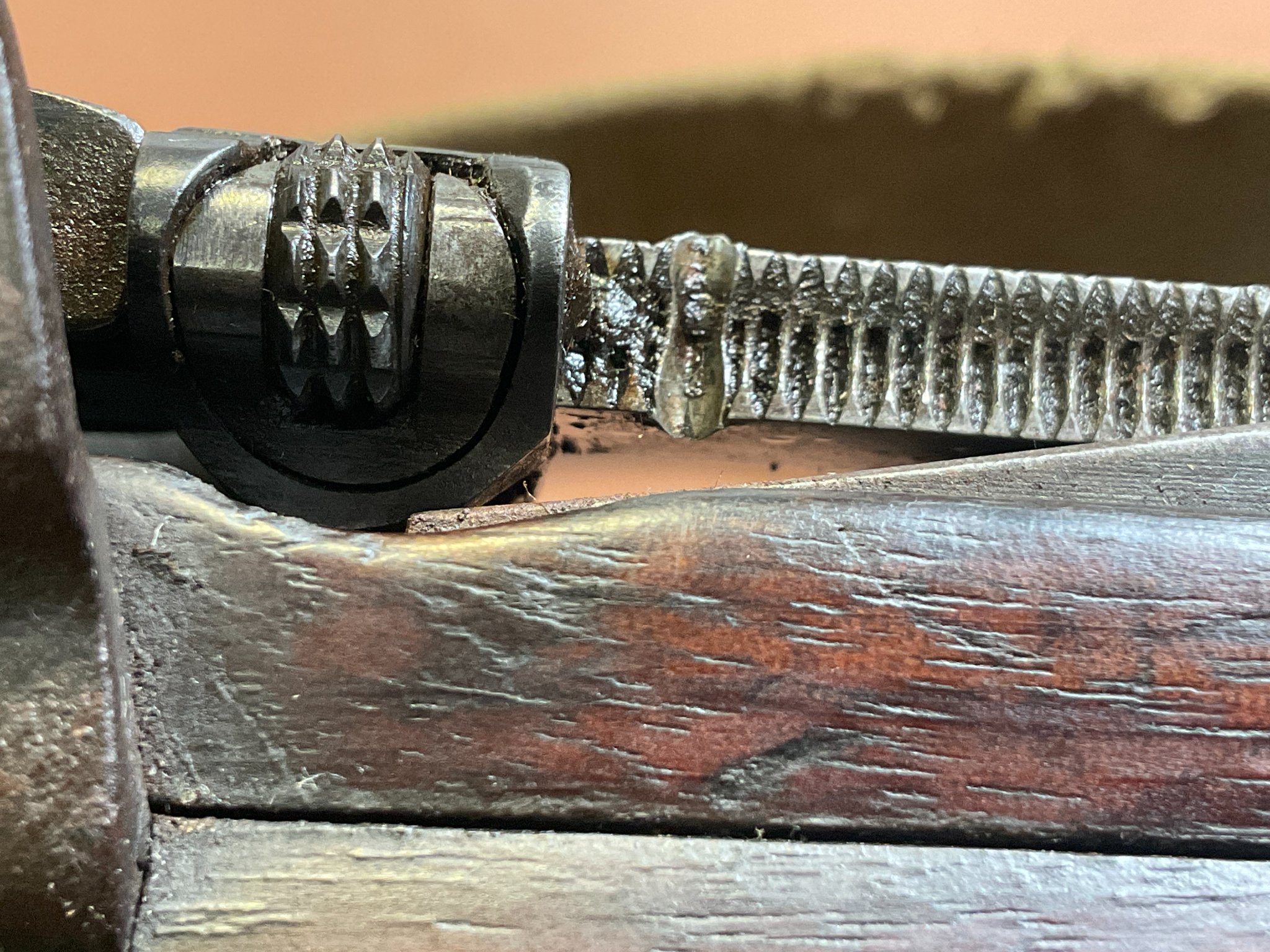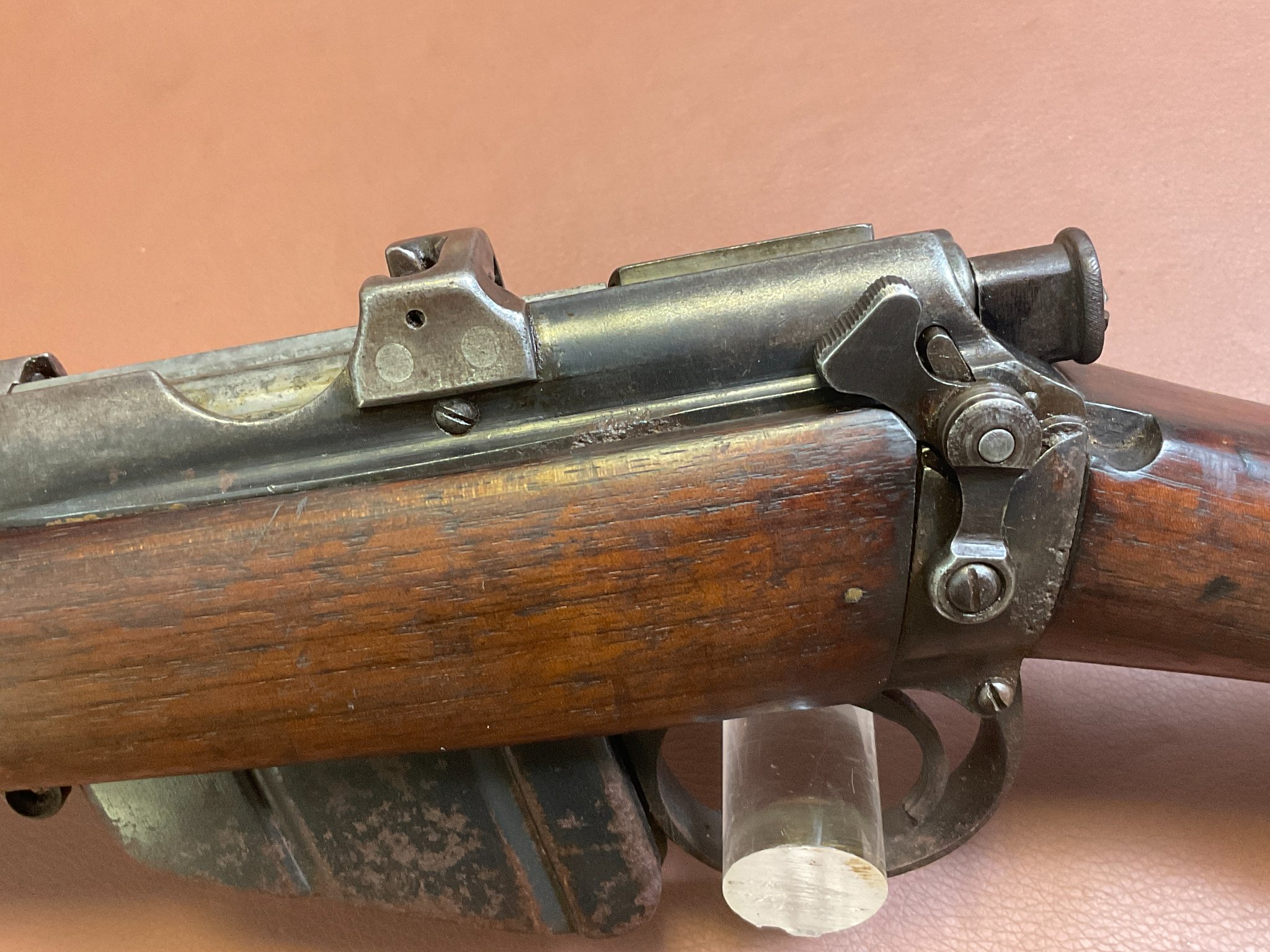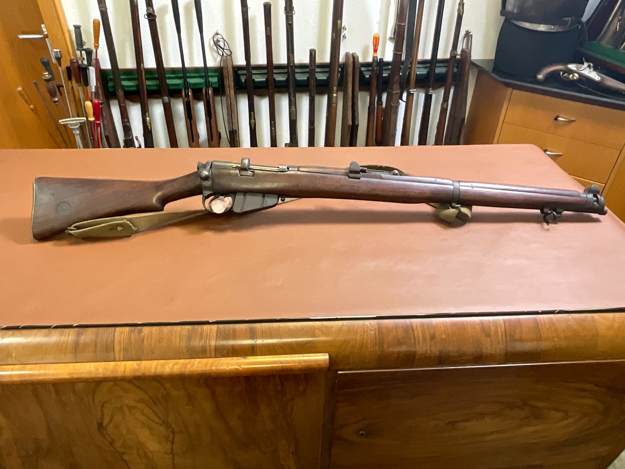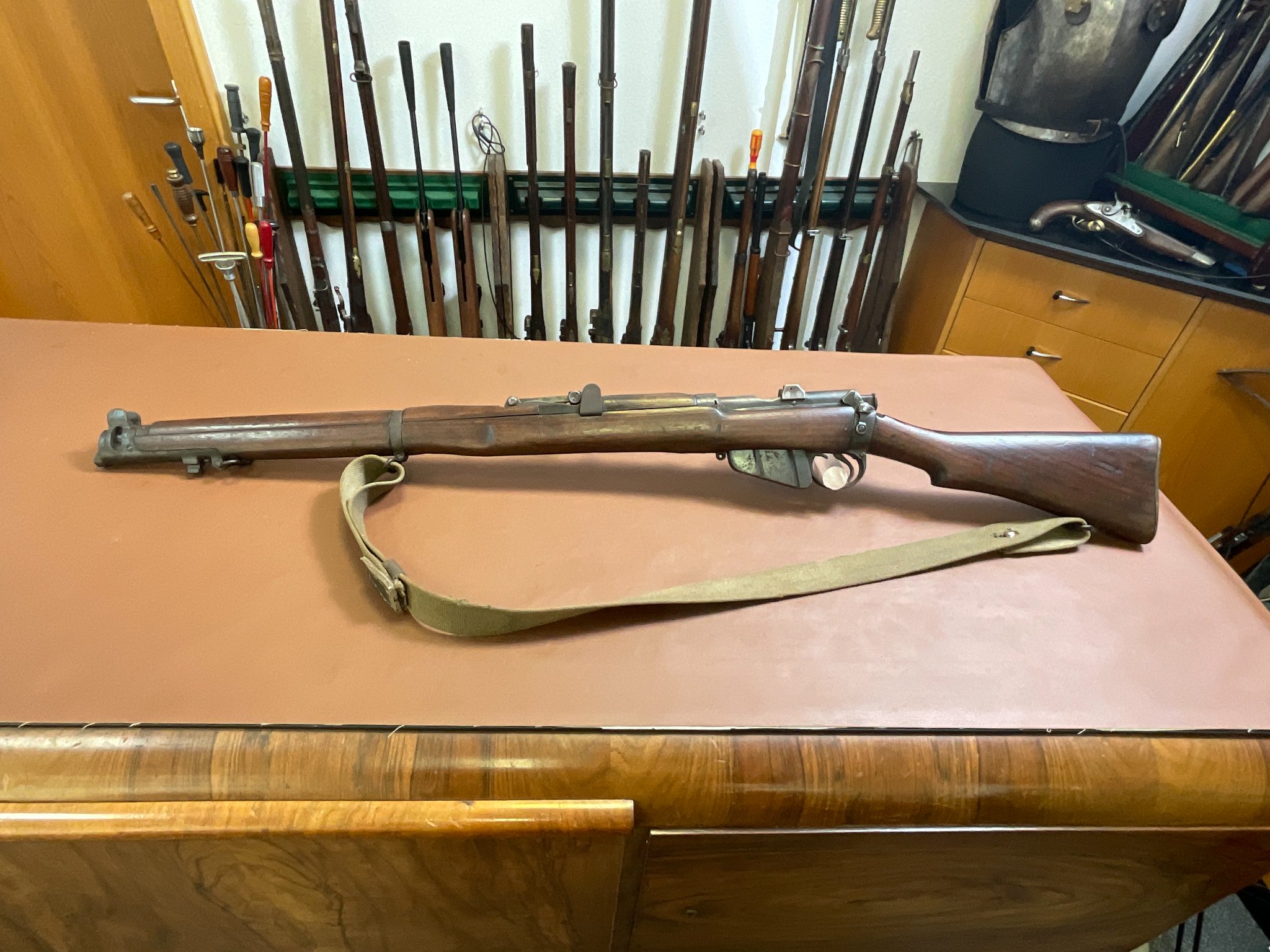 Zum Verkauf steht eine englische Repetierbüchse aus dem Zweiten Weltkrieg. Die Waffe befindet sich in einem schlecht gelagerten Zustand, ist jedoch technisch grundsätzlich solide.