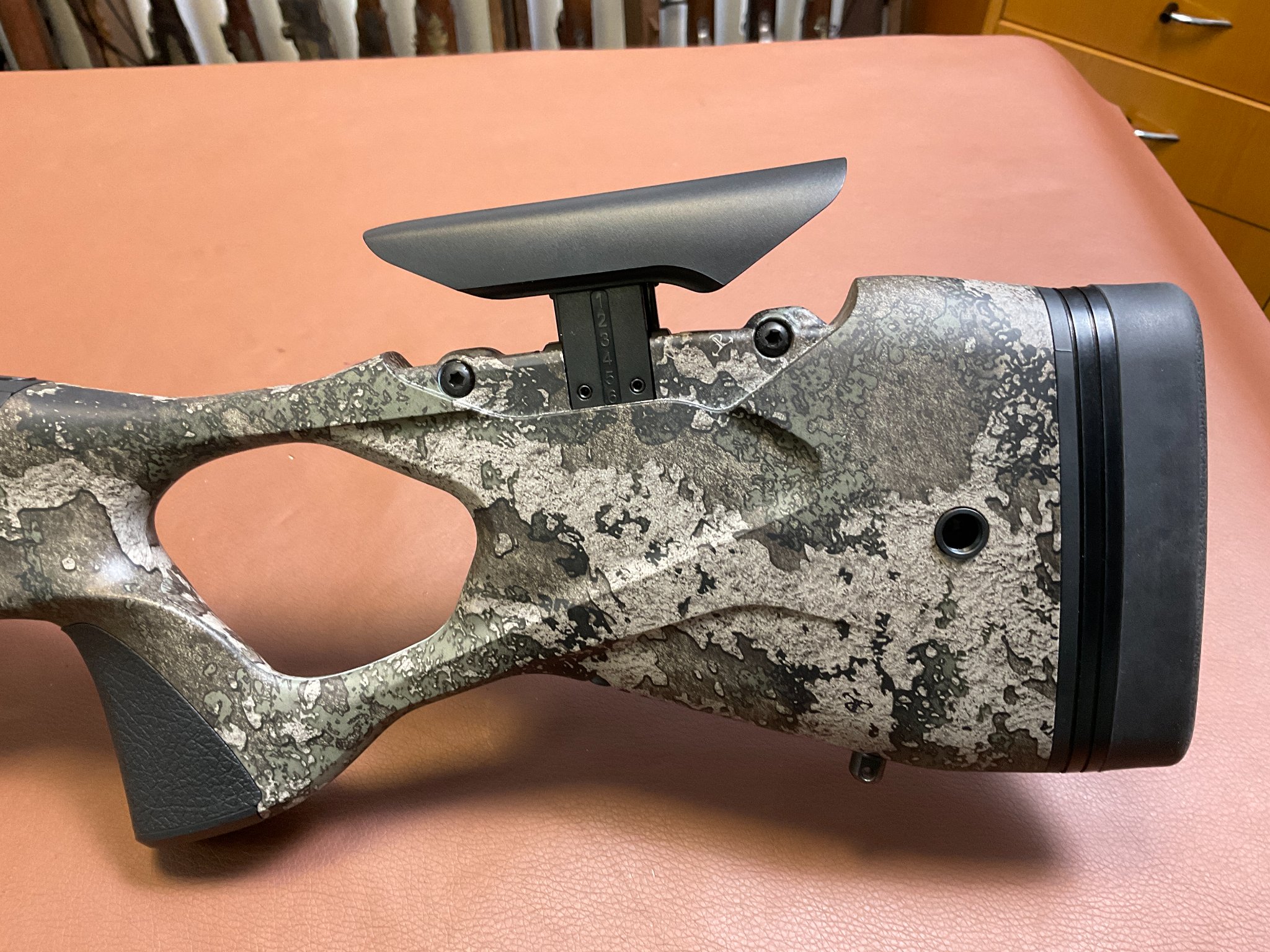 • Schaft: ergonomischer, synthetischer Lochschaft mit höhenverstellbarer Wangenauflage für individuellen Anschlagkomfort.