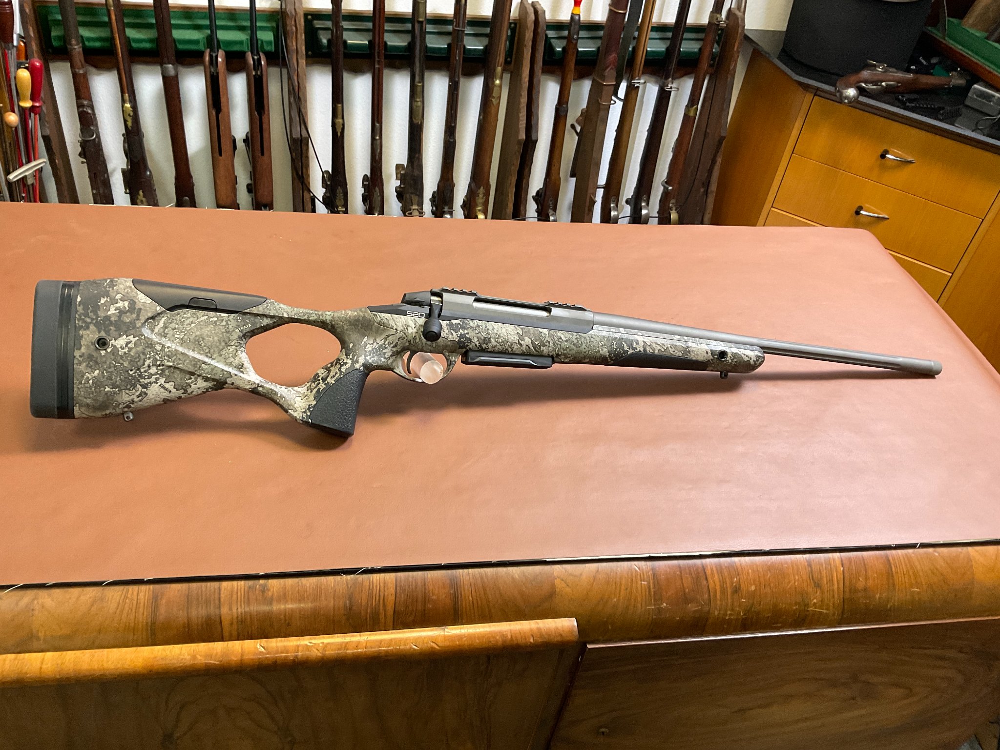 Zum Verkauf steht eine Sako S20 Hunter Repetierbüchse im Kaliber .308 Winchester, Modell True Timber Strata mit 51 cm Lauf. Die Waffe präsentiert sich neuwertig und technisch wie optisch in hervorragendem Zustand.