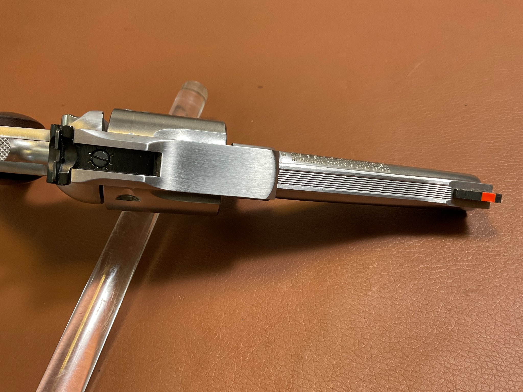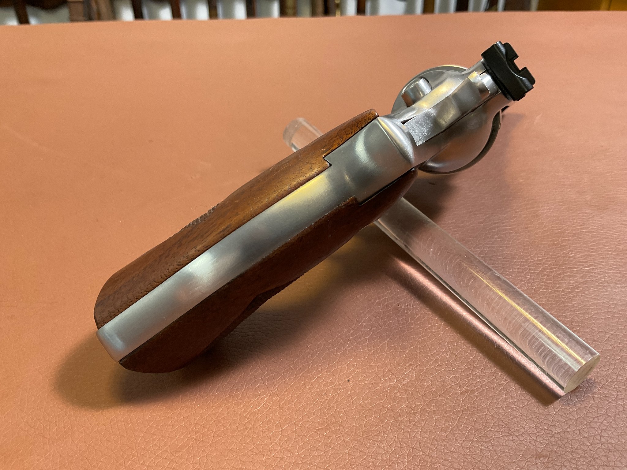 Das Modell verfügt über eine Lauflänge von 10,3 cm, Holzgriffschalen sowie eine verstellbare Visierung.