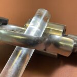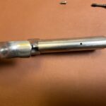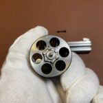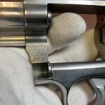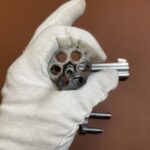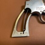 Unter der rechten Griffschale befindet sich eine Gravur des Vorbesitzers. Der Revolver weist leichte, altersbedingte Gebrauchsspuren auf, befindet sich jedoch insgesamt in einem guten Zustand.